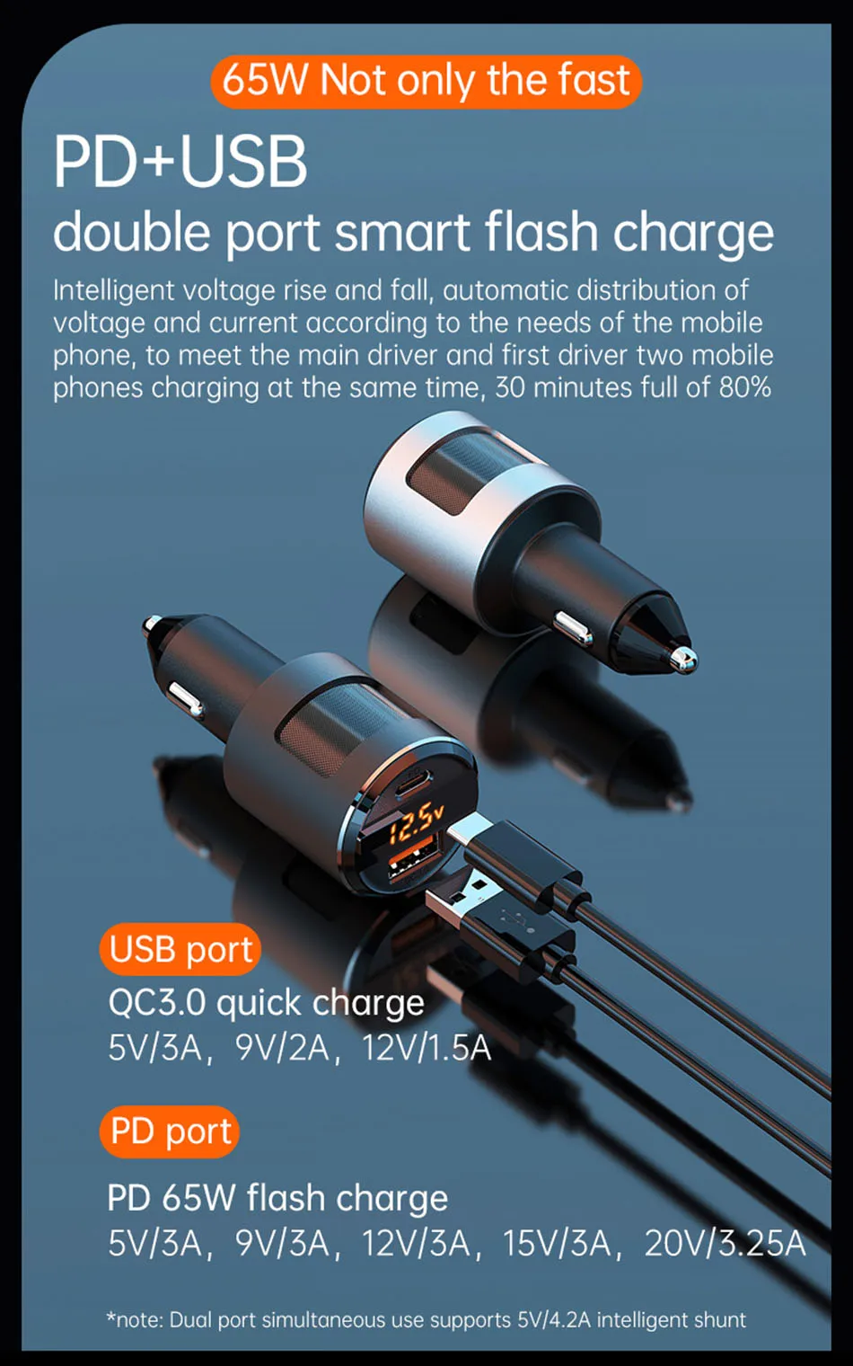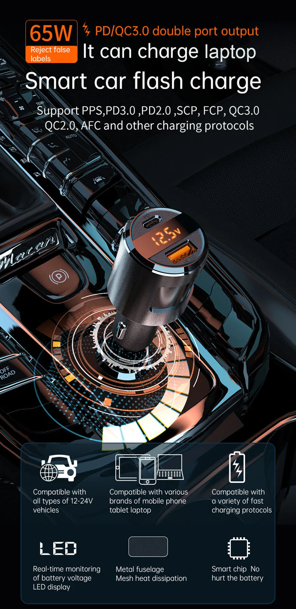 Примечание: Данное автомобильное зарядное устройство не поддерживает быструю зарядку некоторых устройств. Если у вас есть какие-либо вопросы, пожалуйста, свяжитесь с нами.