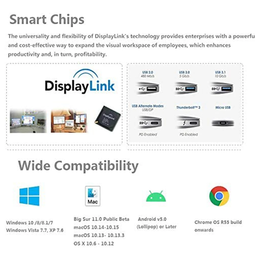 Get more screen space for more productivity. High resolution displays (HDMI, DVI or VGA) will change the way you manage your out of control tabs and your workflow.No more grainy visuals and tiny screens. Watch videos on clear and sharp 2K 60Hz screens (1920x1200 @ 60Hz). Expand your screen real estate with this dock and cut down the time it takes to work on those highly productive tasks.