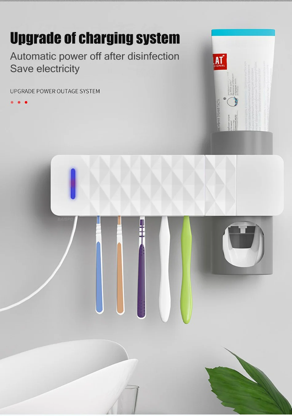 BAISPO 3 в 1 держатель для УФ Зубной Щетки Автоматический Дозатор для зубной пасты стерилизатор для зубной щетки Домашний набор аксессуаров для ванной комнаты