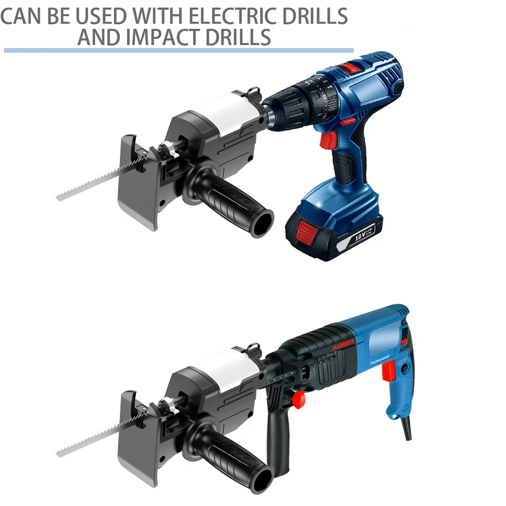 Портативный адаптер сабельной пилы всего поставляется с 15 лезвиями пилы можно использовать на дереве и металле. Подходит для различных сценариев использования.