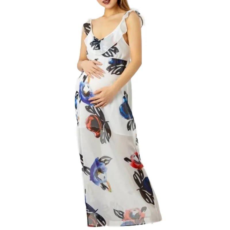 Одежда на каждый день для беременных длинное шифоновое модное платье с оборками; Платье для беременных женщин; Летнее платье в цветочном принте, боковой Разделение беременности халат вечерние платья