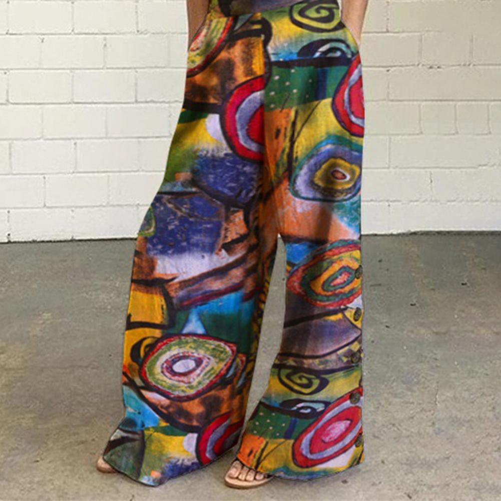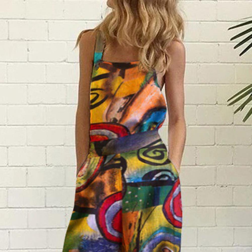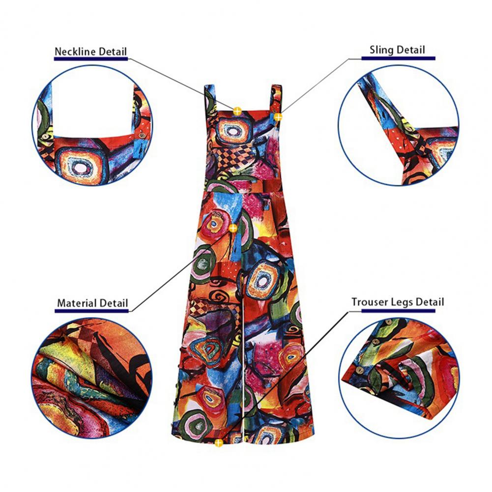 Абстрактная картина маслом делает этот комбинезон очень уникальным и привлекательным. Благодаря дизайну широких брюк вам будет очень удобно носить их.