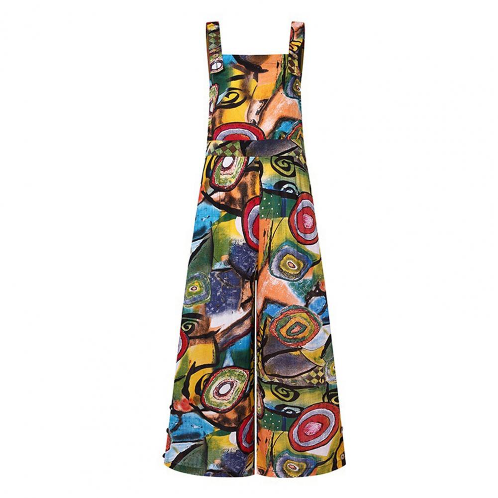 Комбинезоны размера плюс для женщин с цветочным принтом Jumpsuist 2021 повседневные широкие брюки комбинезоны винтажные офисные комбинезоны