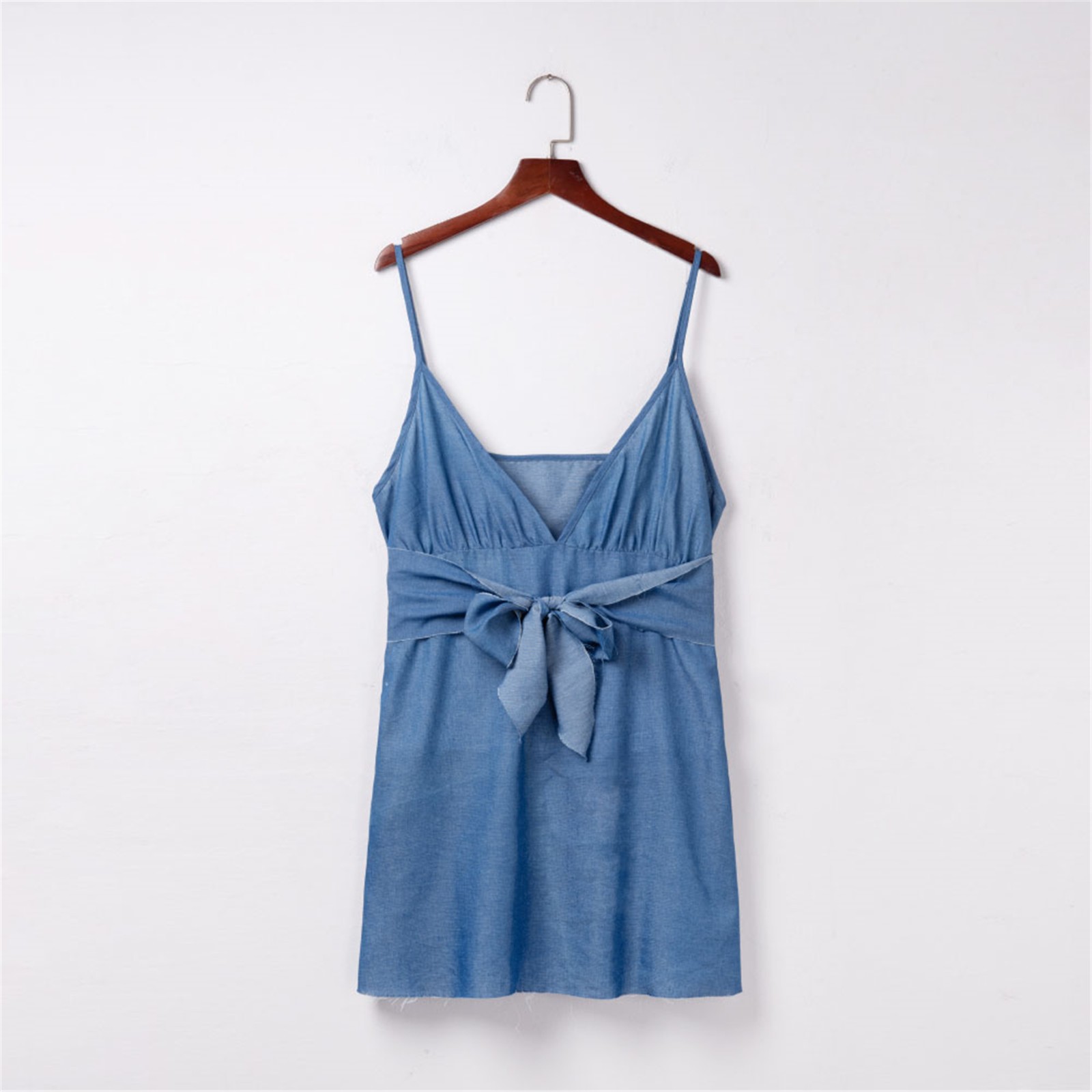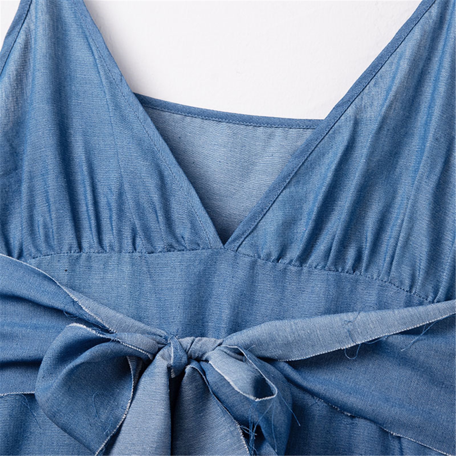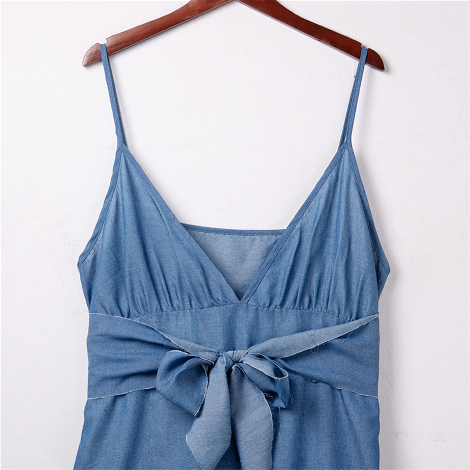 DescriptionМодное женское Ковбойское Повседневное платье без рукавов с v-образным вырезом и галстуком-бабочкой Пожалуйста, проверьте таблицу размеров перед заказом. Если вы не уверены в размере, пожалуйста, отправьте нам сообщение.Особенности: