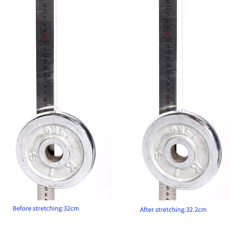 Повесьте вес 3 кг и растяните его много раз. Очень низкое удлинение.