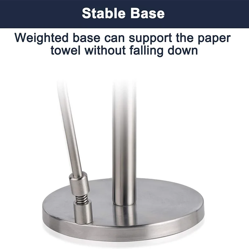 1. Прочный материал-изготовлен из прочной нержавеющей стали для обеспечения длительного использования. Утяжеленное основание держателя для бумажных полотенец, чтобы не упасть во время разрыва листа бумаги