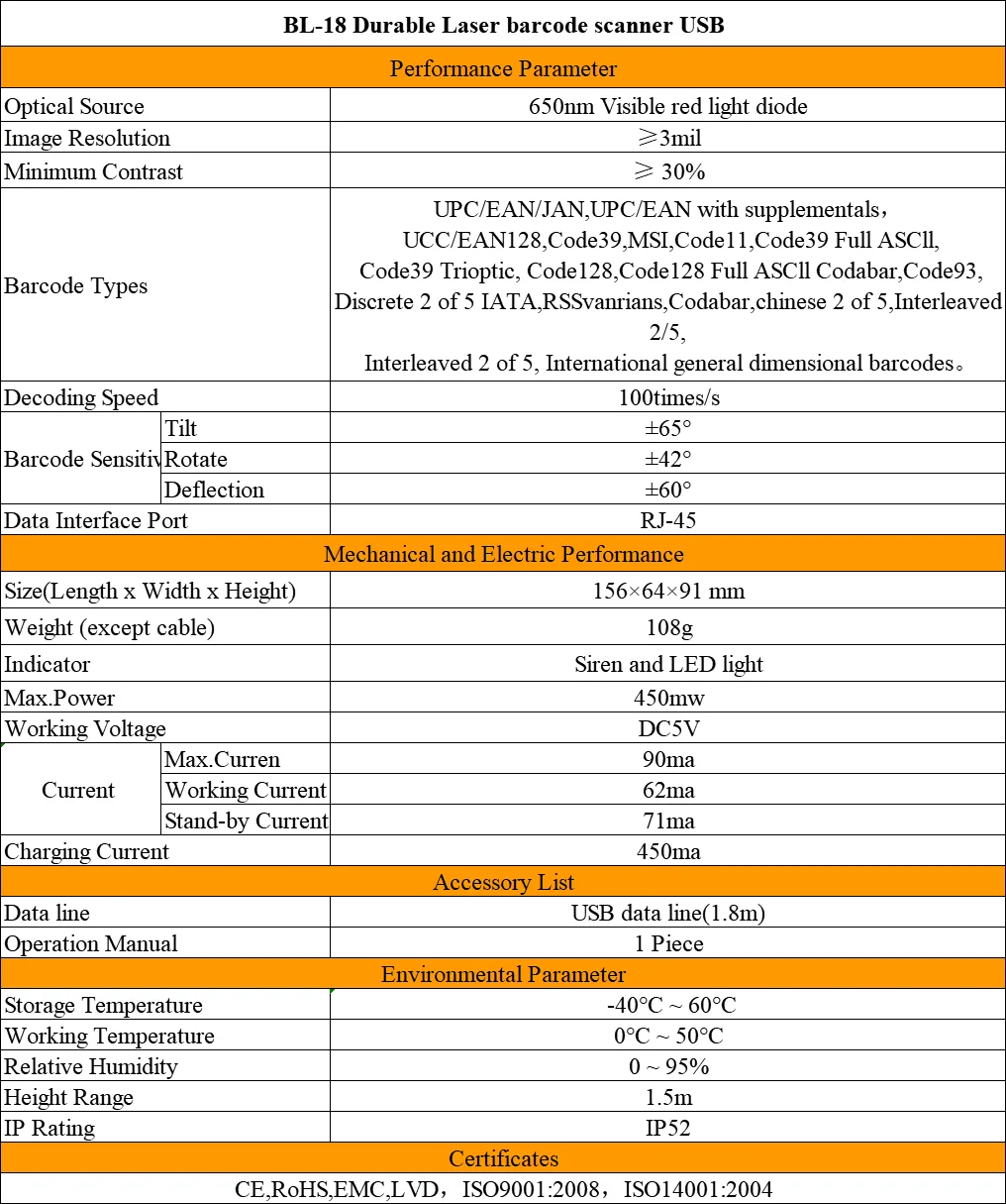 BL-18 прочный лазерный сканер штрих-кода USB