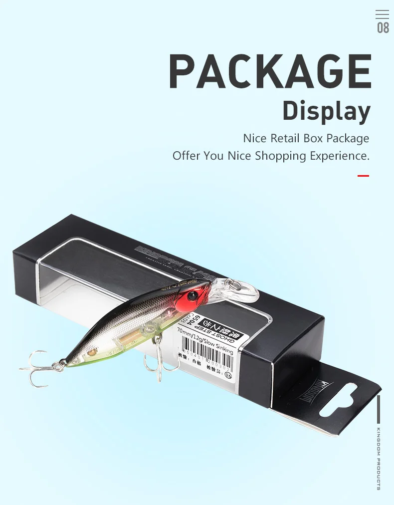 1. Размер и действие: 55 мм 7 г погружение; 70 мм 12 г погружение