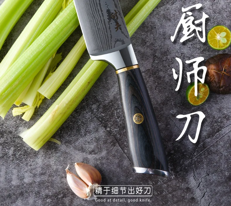 7,5 дюймов шеф-повара Ножи 5CR1 5MOV Нержавеющая сталь Sharp нарезки Кливер японский Пособия по кулинарии Ножи из дамасской стали лазерной Кухня ножи с подарочной коробкой