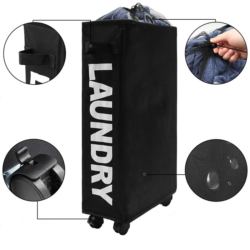 Колесная корзина для белья для домашнего хранения. Вы можете легко хранить измененную одежду и другие мелочи, чтобы еще больше улучшить вашу домашнюю среду. Эта корзина для белья изготовлена из толстой водонепроницаемой ткани Оксфорд, поэтому она может быть водонепроницаемой и используется для длительного использования. Квадратный дизайн не занимает места, а также может организовать и украсить ваш дом, сделав ваш дом теплым и стильным. Сетчатая крышка сверху может изолировать пыль и избежать запаха и плесени на одежде внутри. Универсальные колеса могут вращаться свободно. Если вы не используете корзину для белья, на одном из колес есть тормоз для обеспечения безопасности.