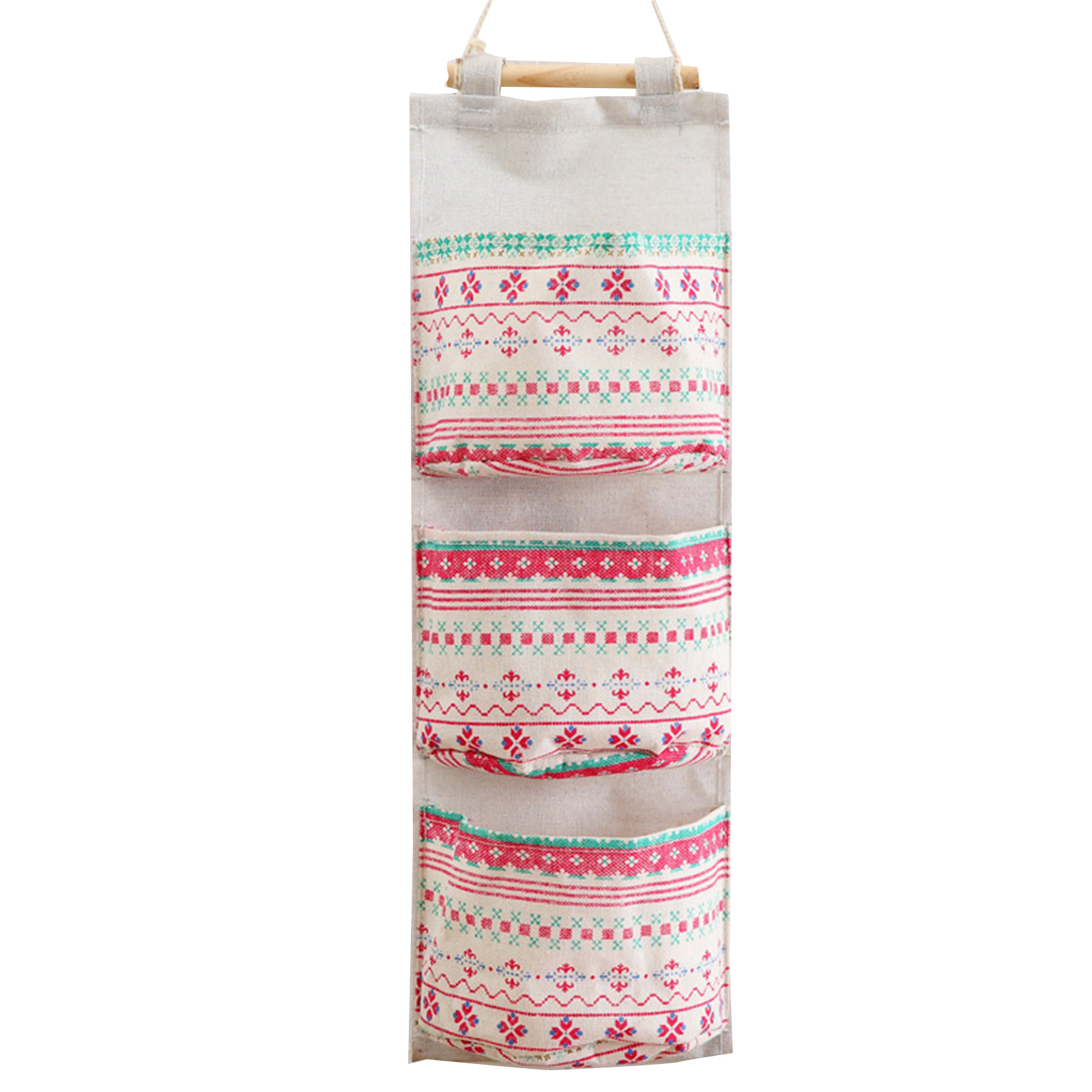 4. Foldable design and space saving: with 3 pockets. Foldable design, equipped with wooden strips and cotton rope, can be easily hung on doors, walls, closets, etc.