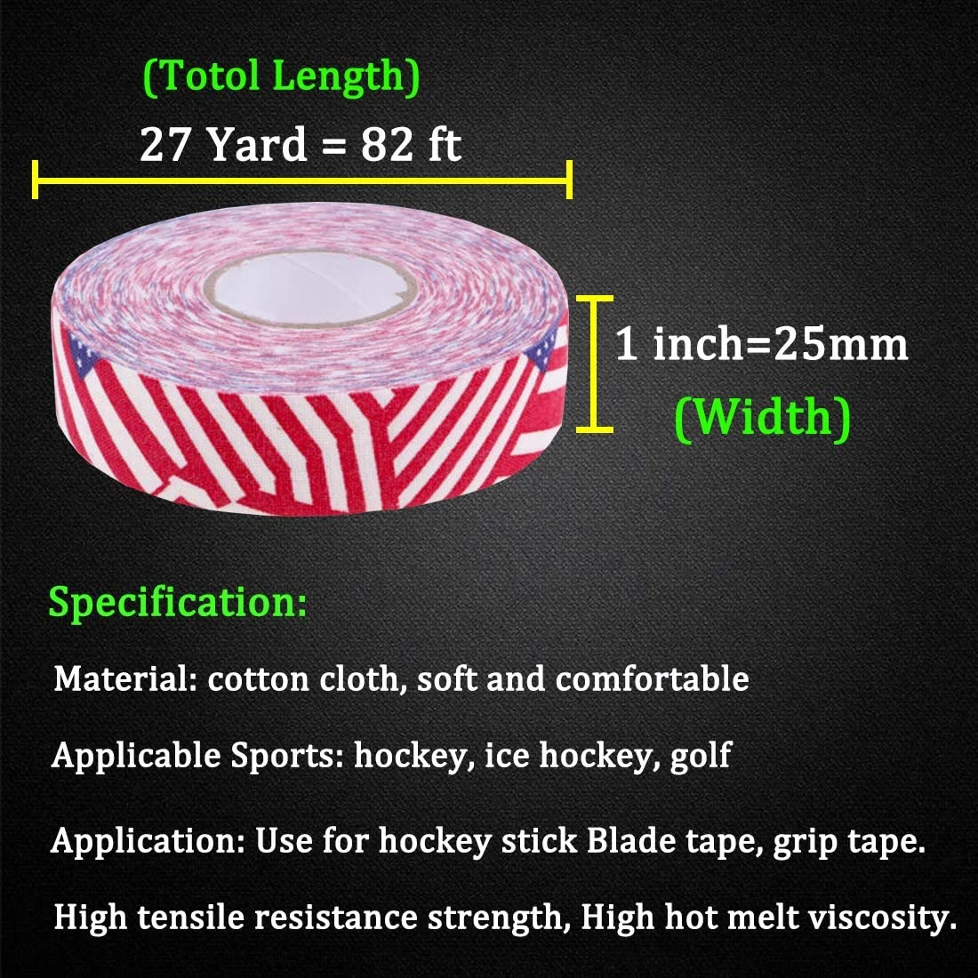 10 рулонов 27,3 ярдов Черные хоккейные ленты