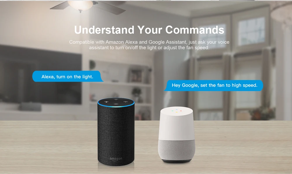 Совместим с Amazon Alexa и Google Home, просто попросите iFan03 включить/выключить потолочный вентилятор