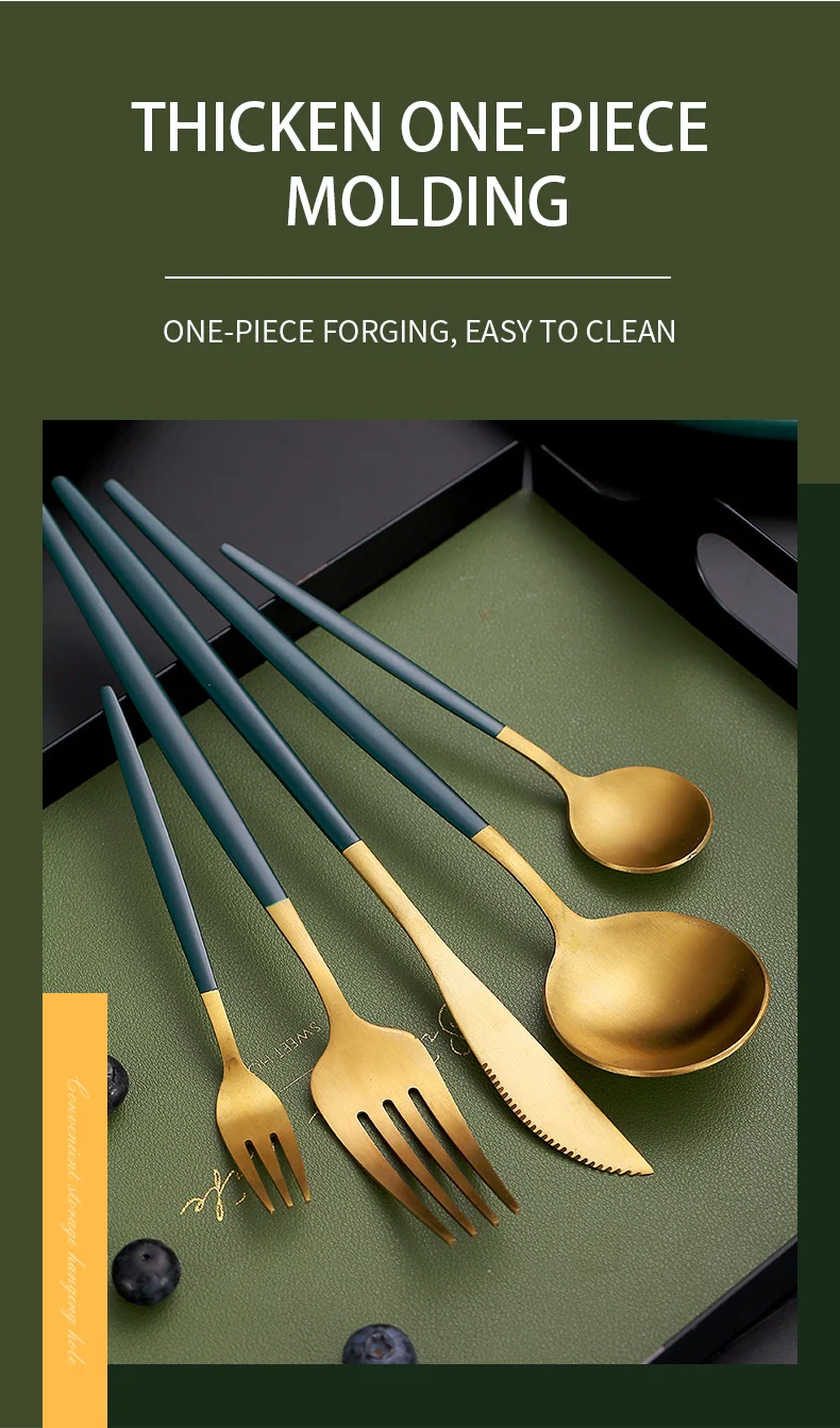 WORTHBUY Портативный Золотой набор столовых приборов из нержавеющей стали набор столовых приборов для путешествий кухонный нож вилка ложка столовая посуда столовое серебро