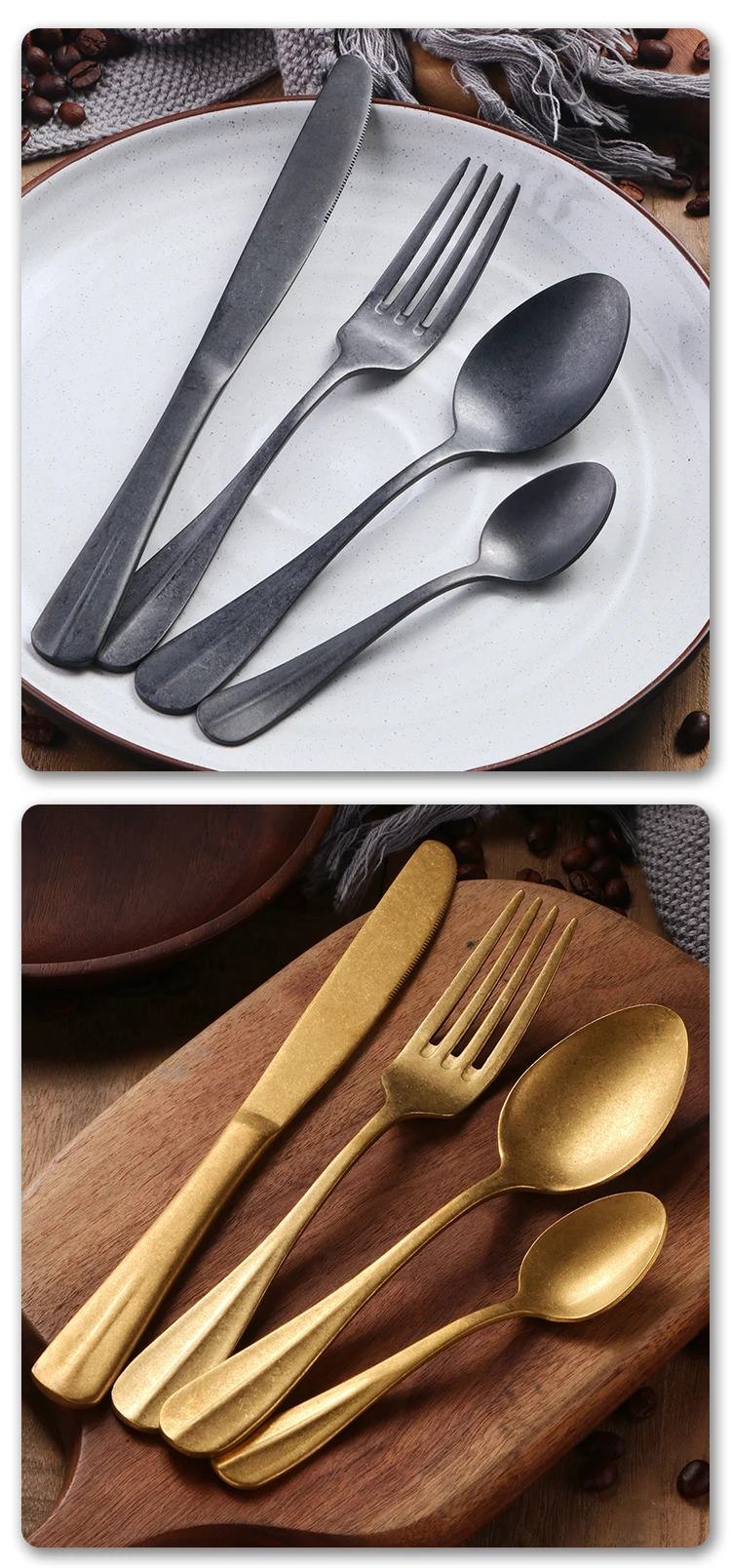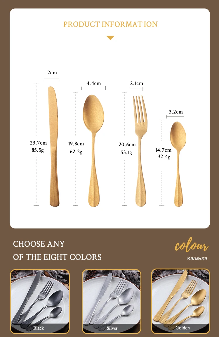 Количество: 1 комплект (4 шт.) = 1 нож + 1 вилка + 1 ложка + 1 чайная ложка