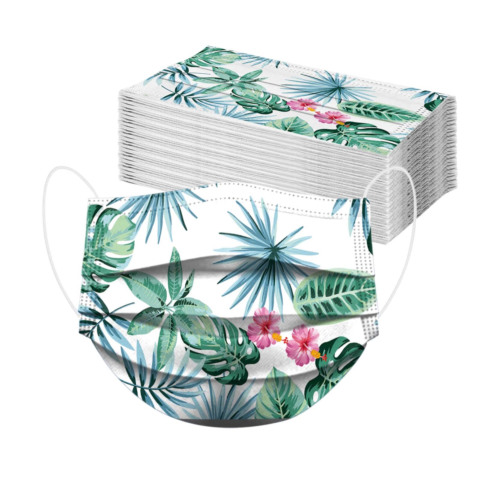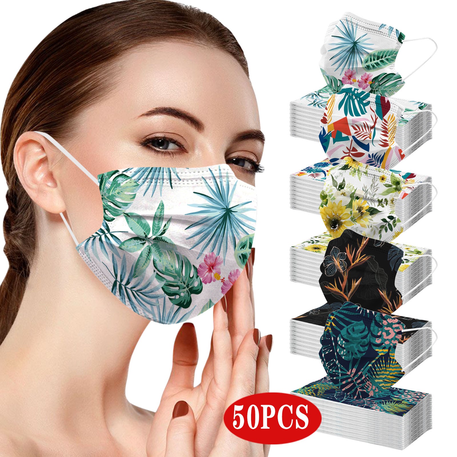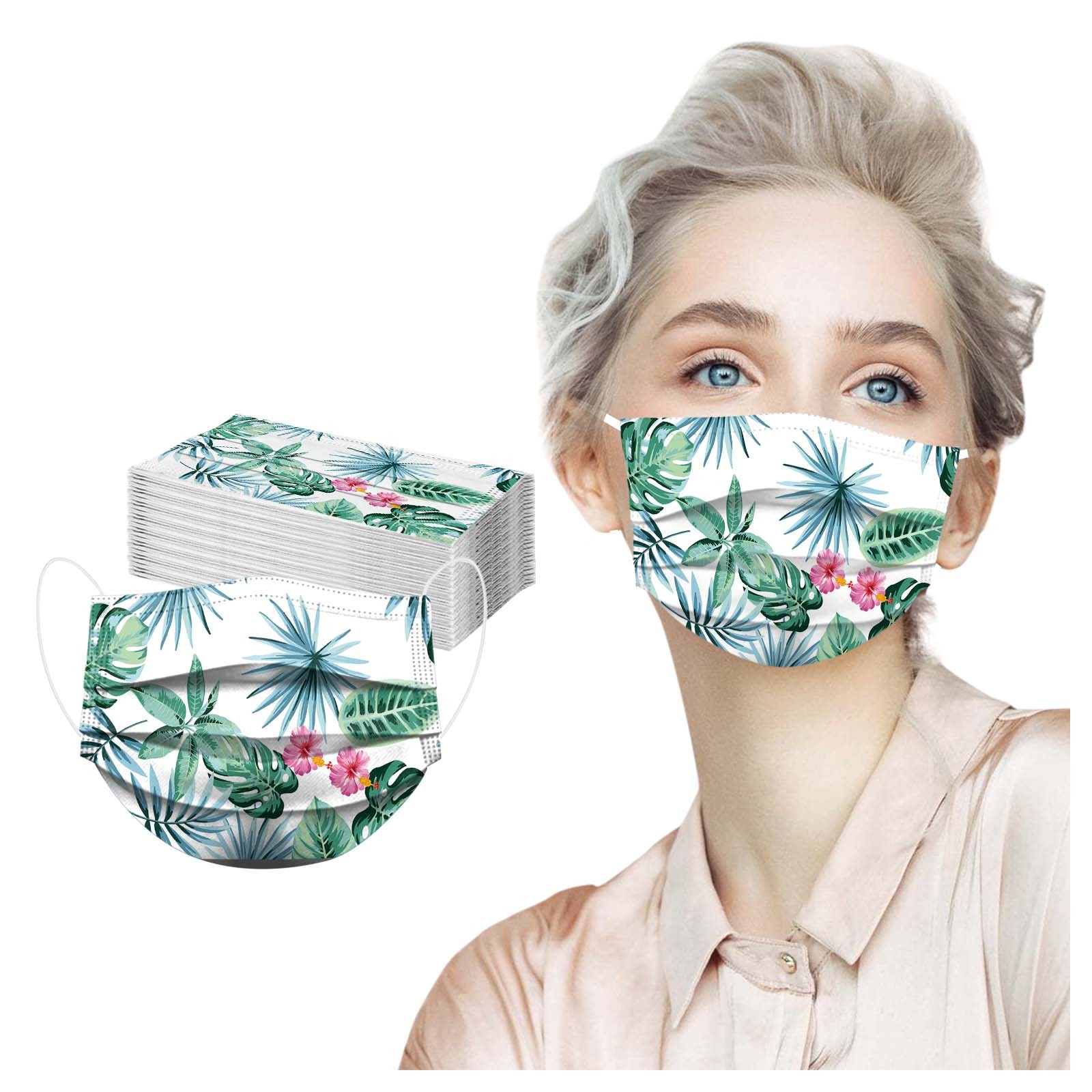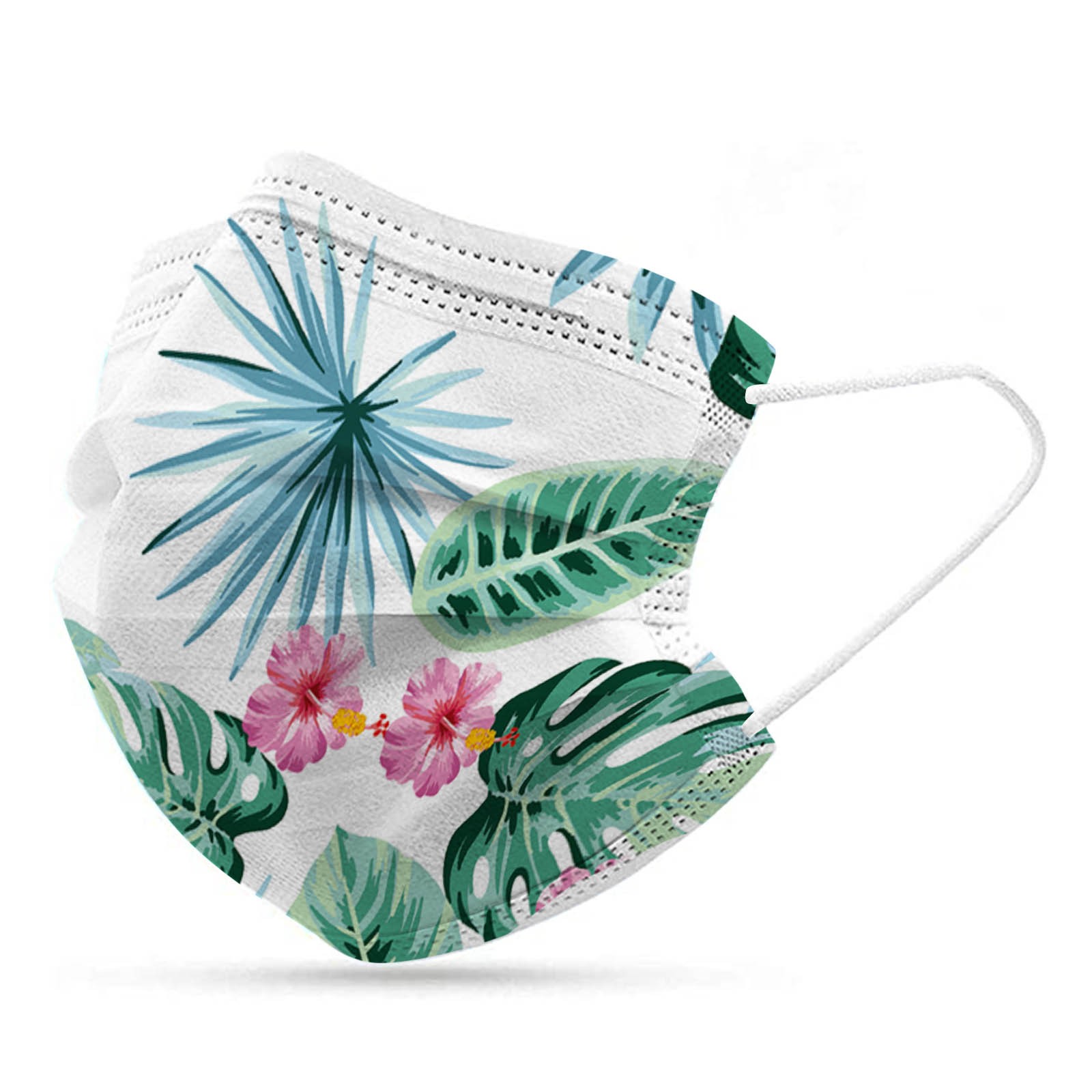 50 шт. взрослых Летние повседневные красивый кардиган, с цветочным принтом, 3-Слои одноразовая маска для лица