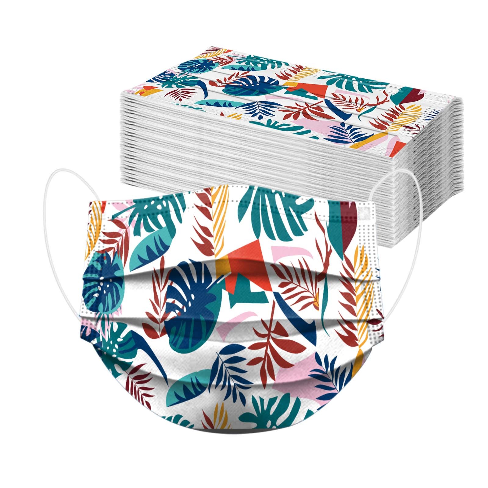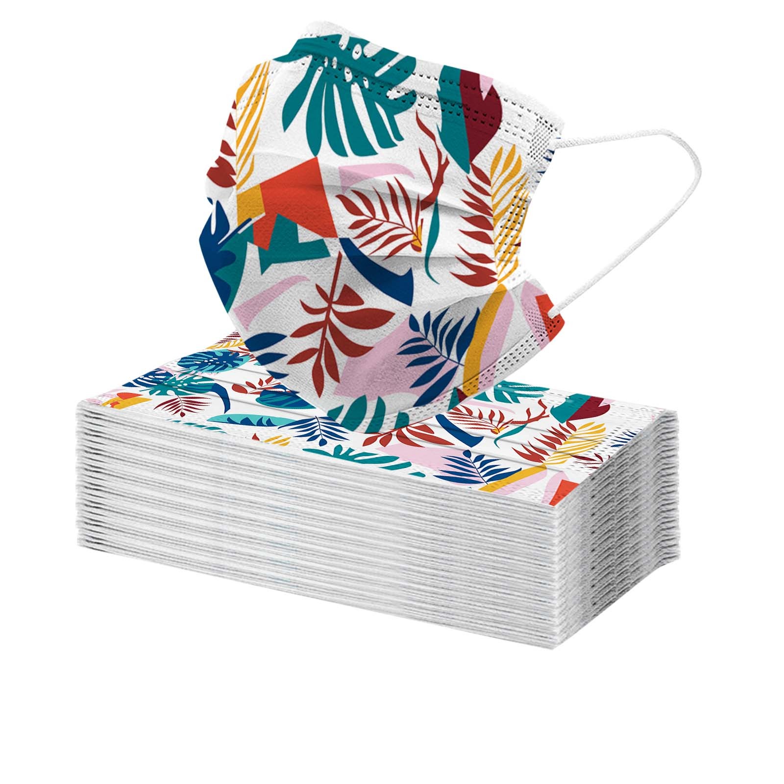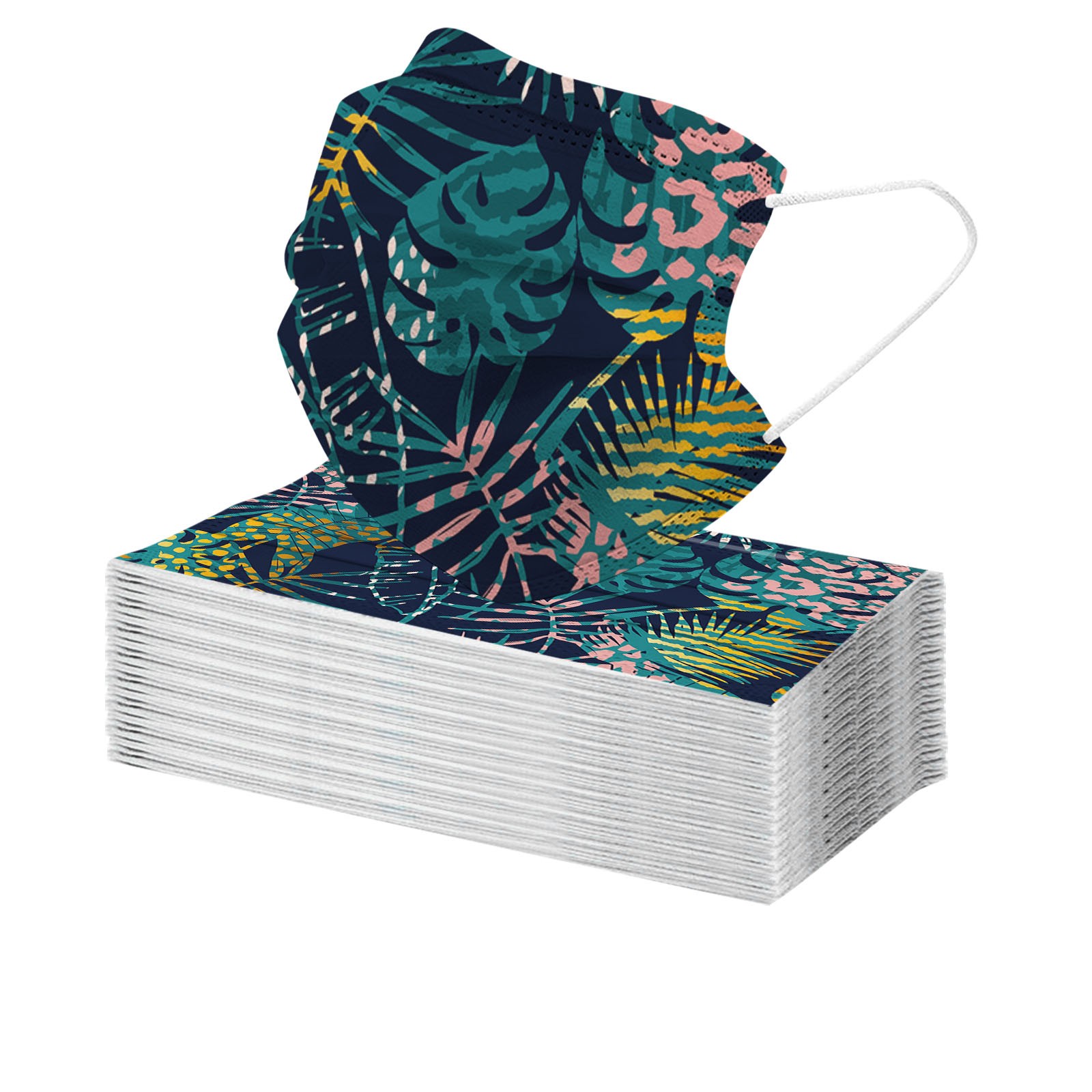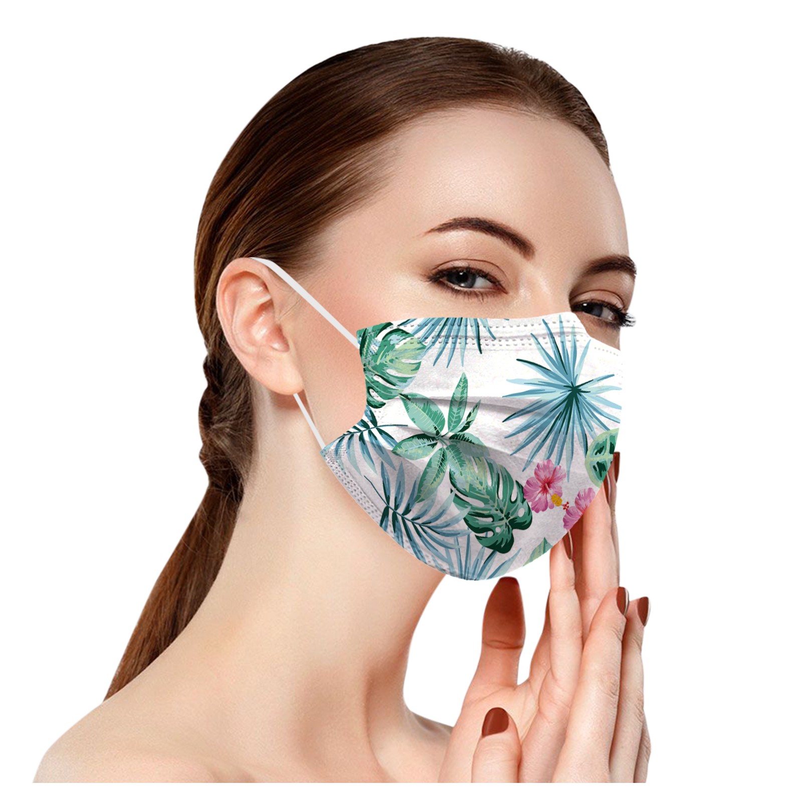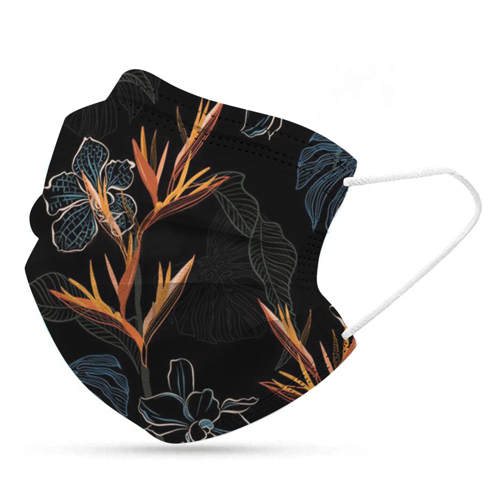 50 шт. взрослых Летние повседневные красивый кардиган, с цветочным принтом, 3-Слои одноразовая маска для лица