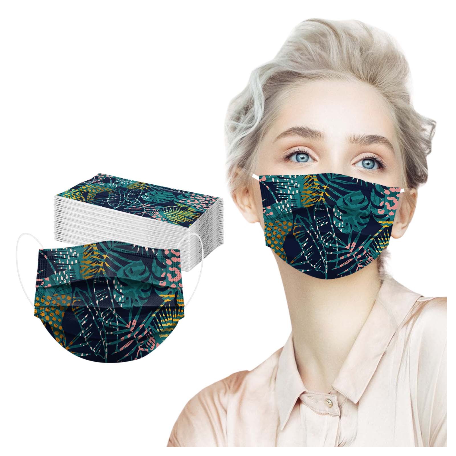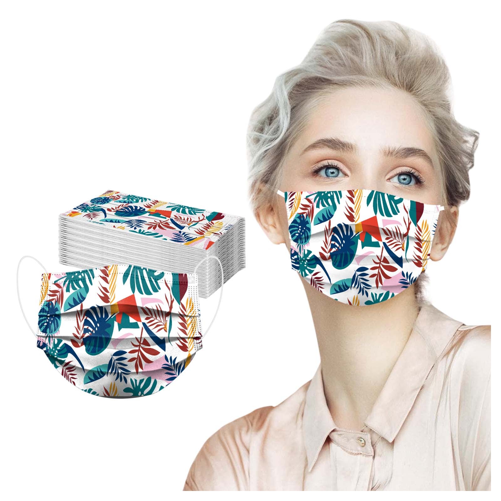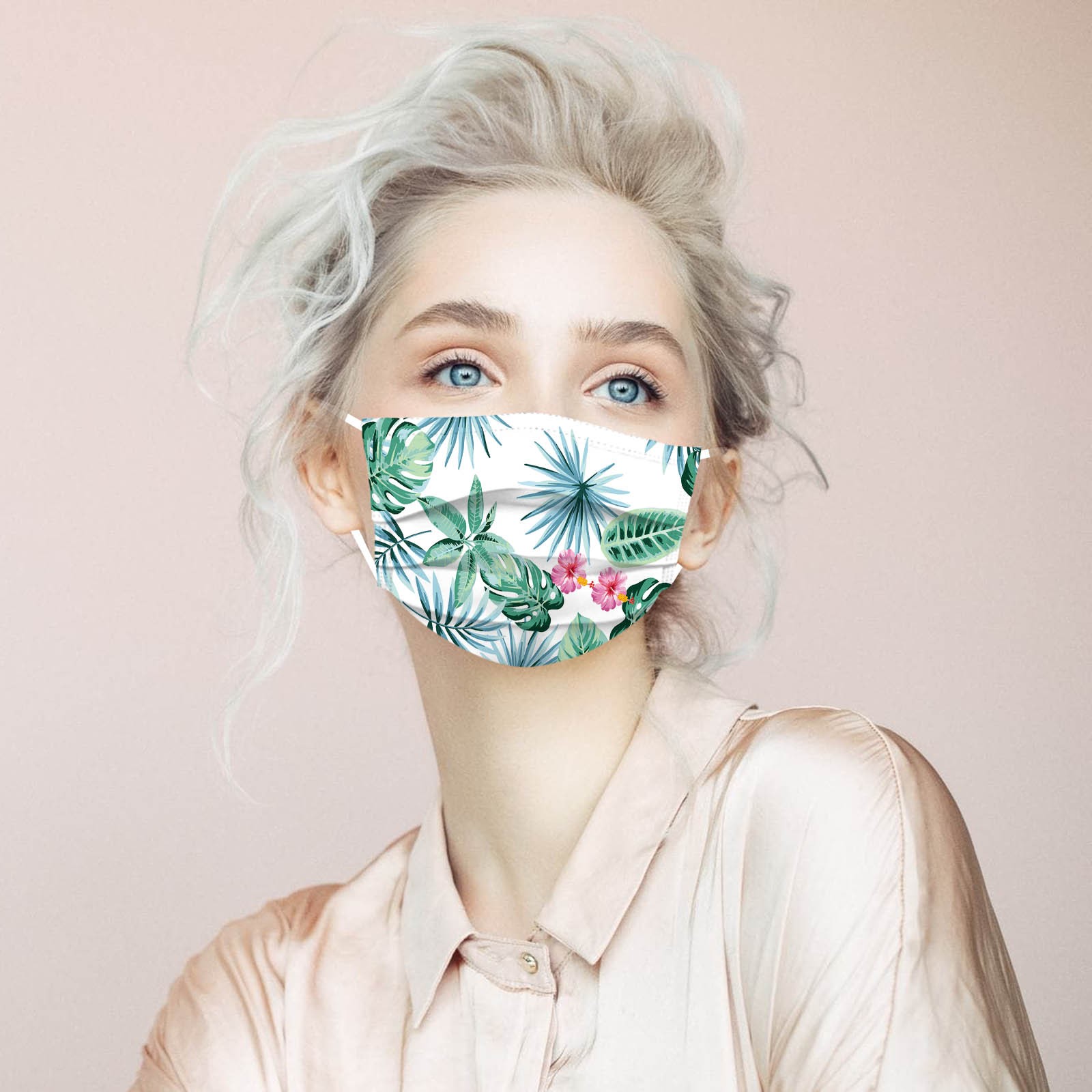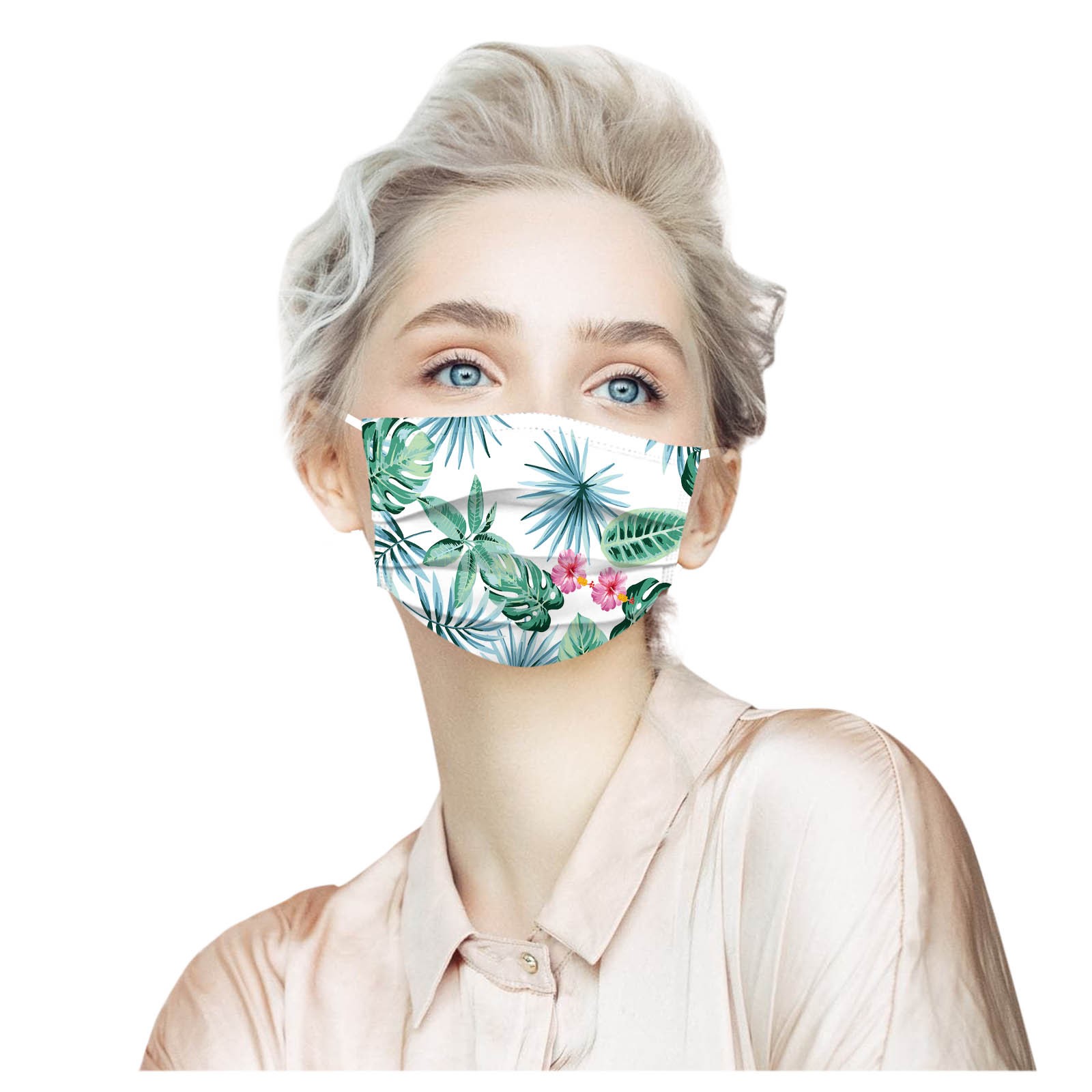 50 шт. взрослых Летние повседневные красивый кардиган, с цветочным принтом, 3-Слои одноразовая маска для лица
