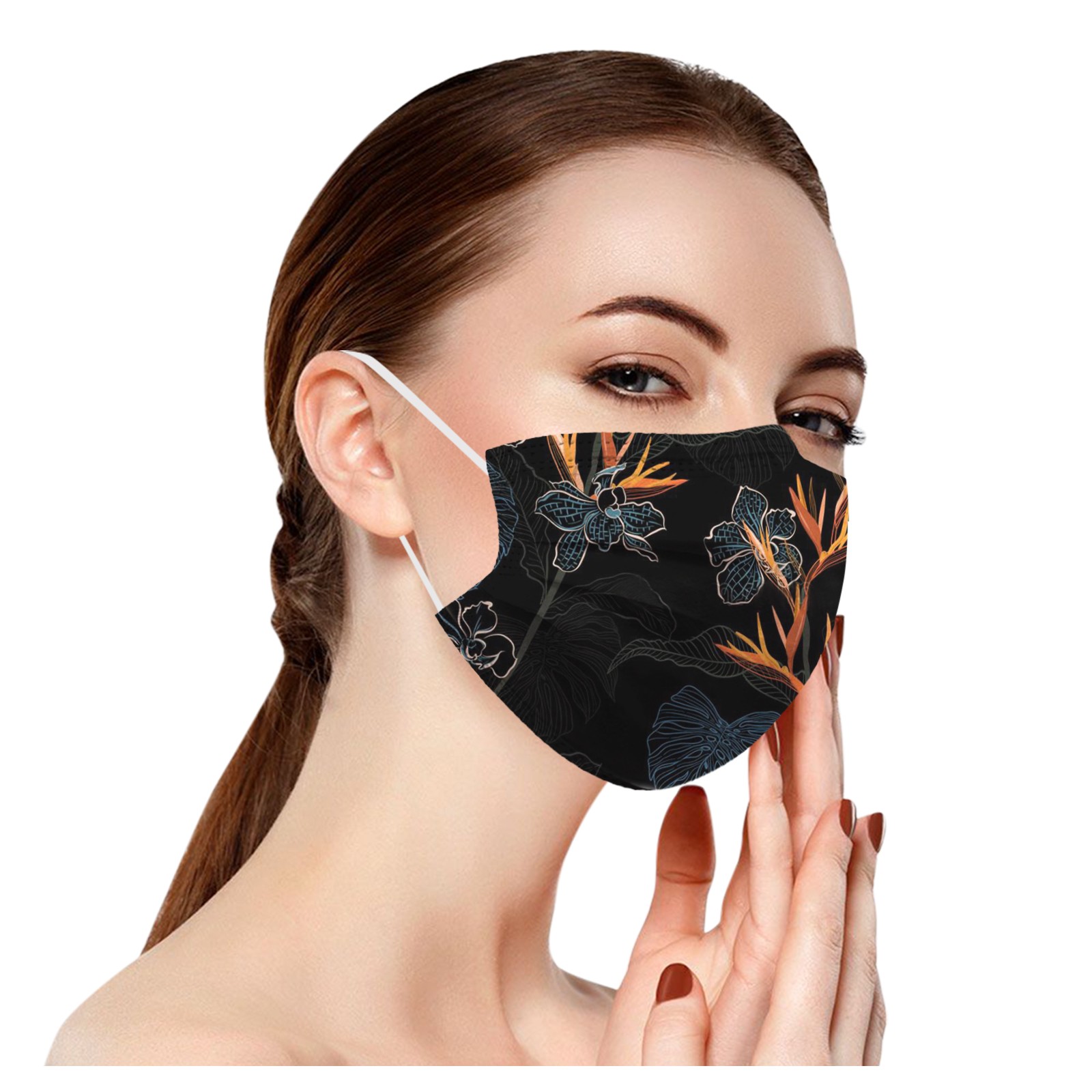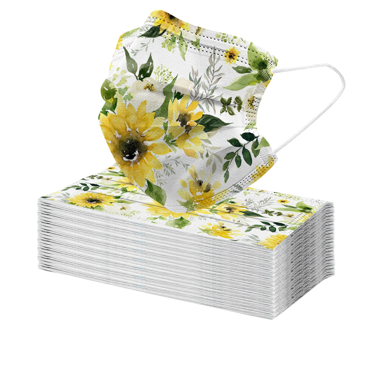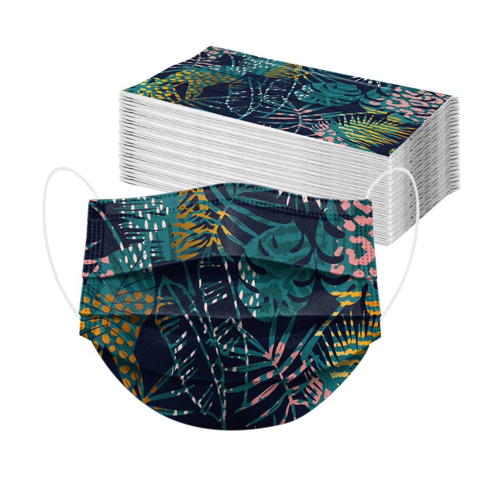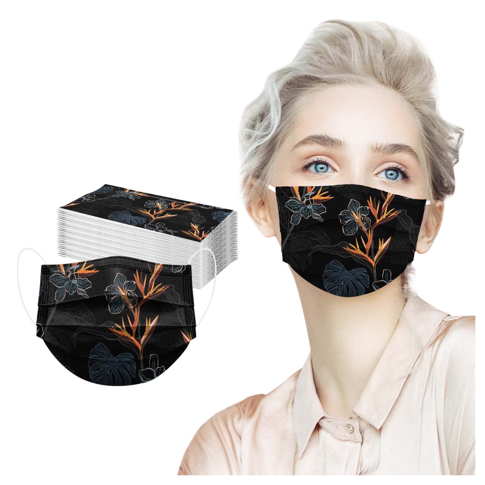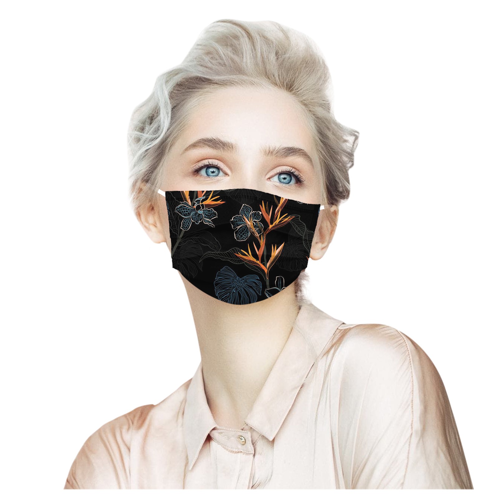 50 шт. взрослых Летние повседневные красивый кардиган, с цветочным принтом, 3-Слои одноразовая маска для лица