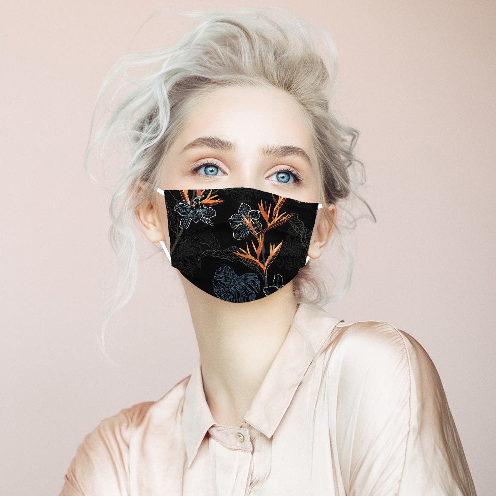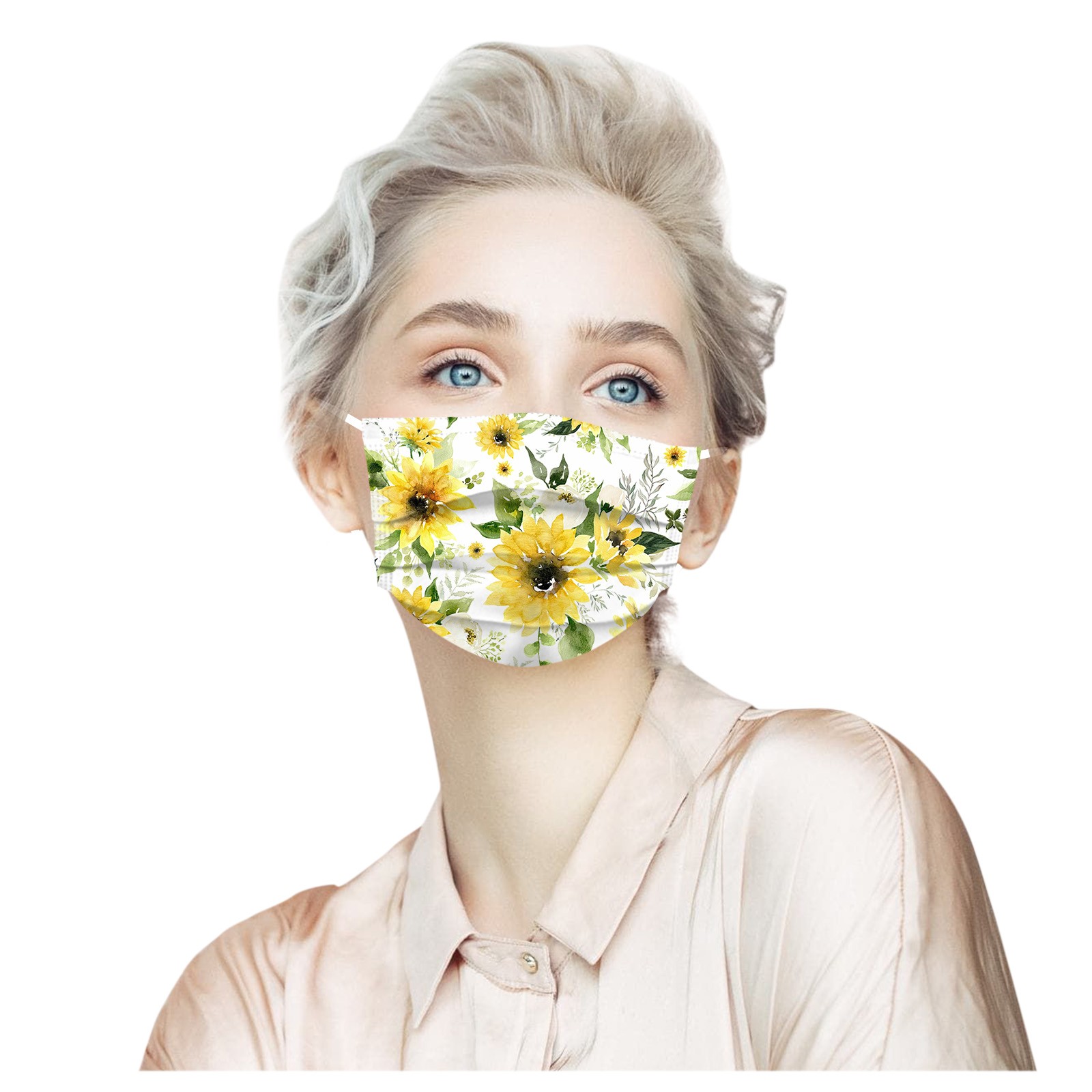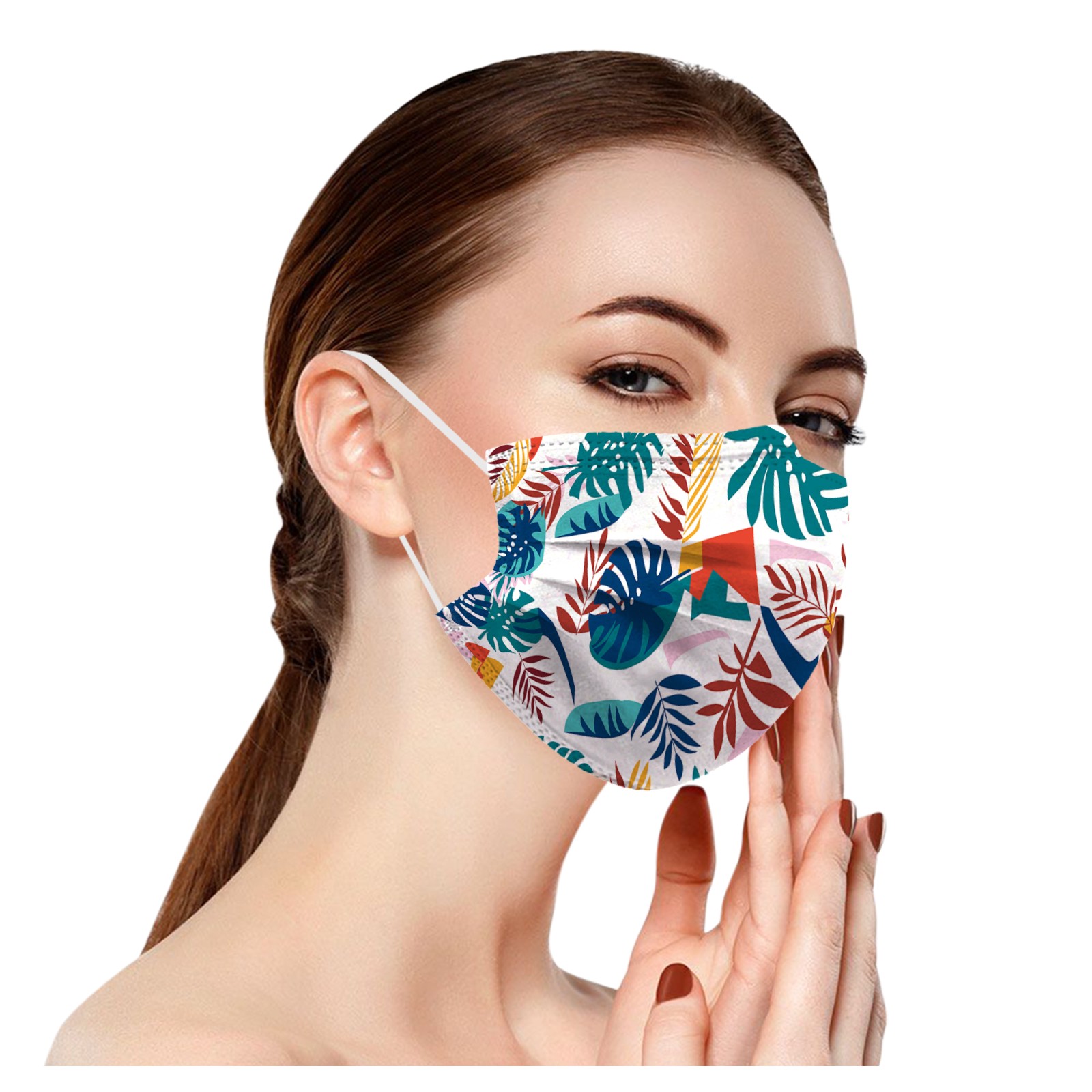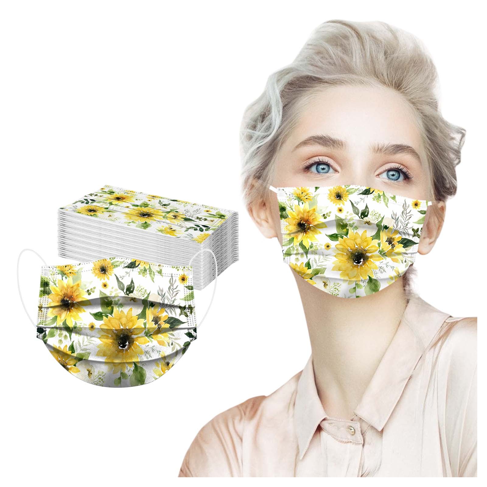50 шт. взрослых Летние повседневные красивый кардиган, с цветочным принтом, 3-Слои одноразовая маска для лица