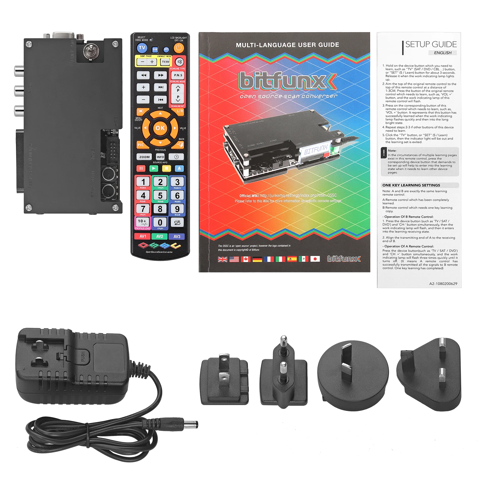 In every OSSC adaptor kit we assure that there is a fully functional remote control with a full-button overlay. This assures full control over all the features of your OSSC. We also include a multi-plug adaptor allowing the connection in most countries out of the box!