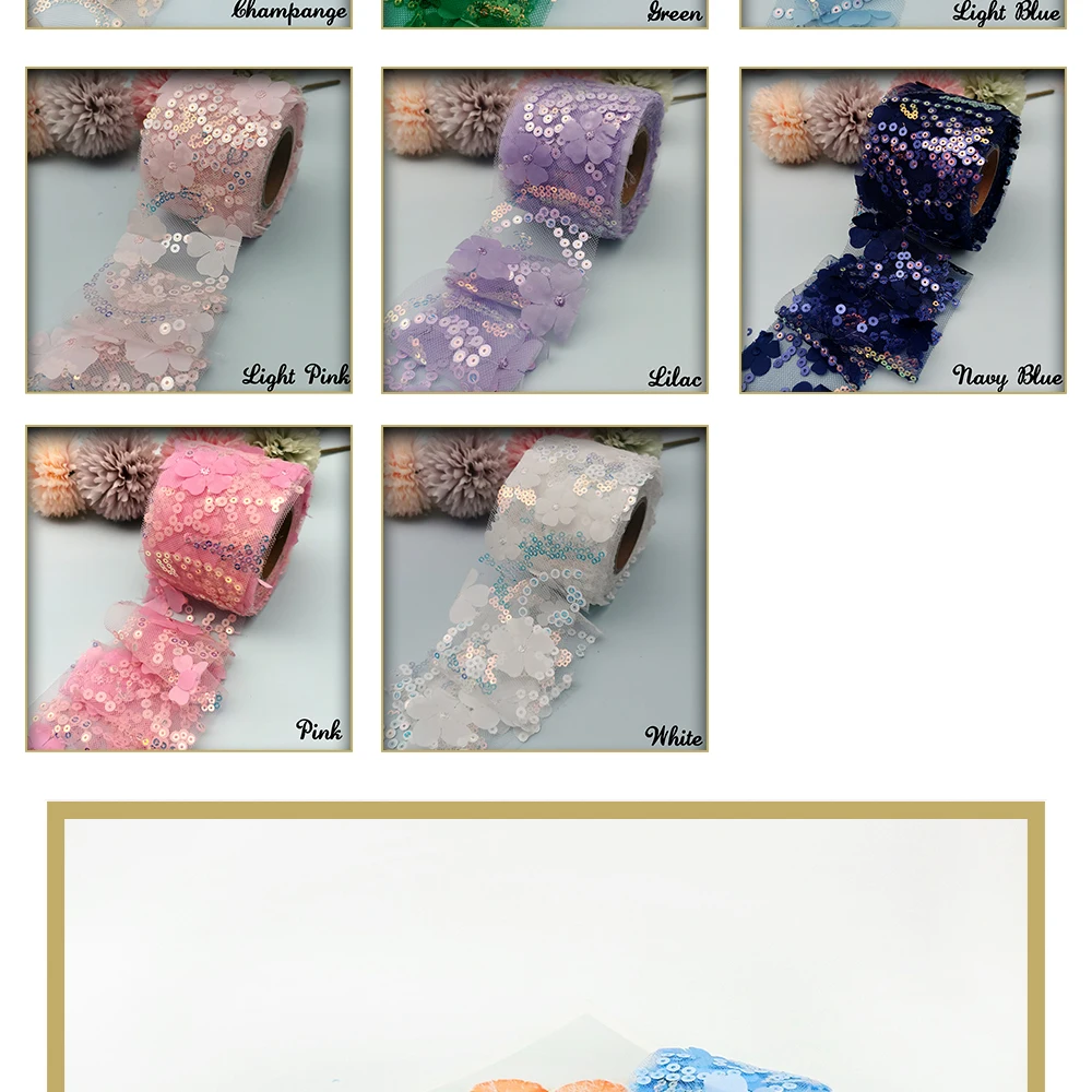 Фатиновая сетчатая лента с объемной цветочной вышивкой