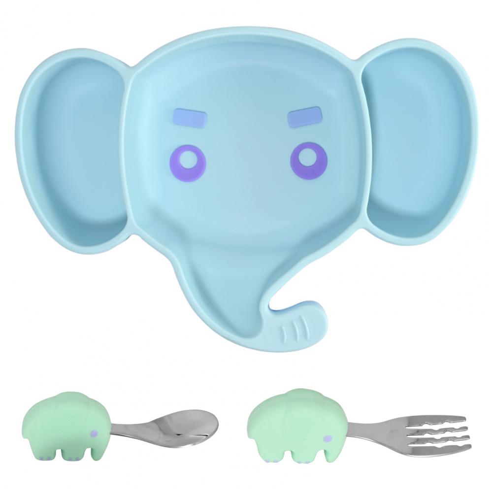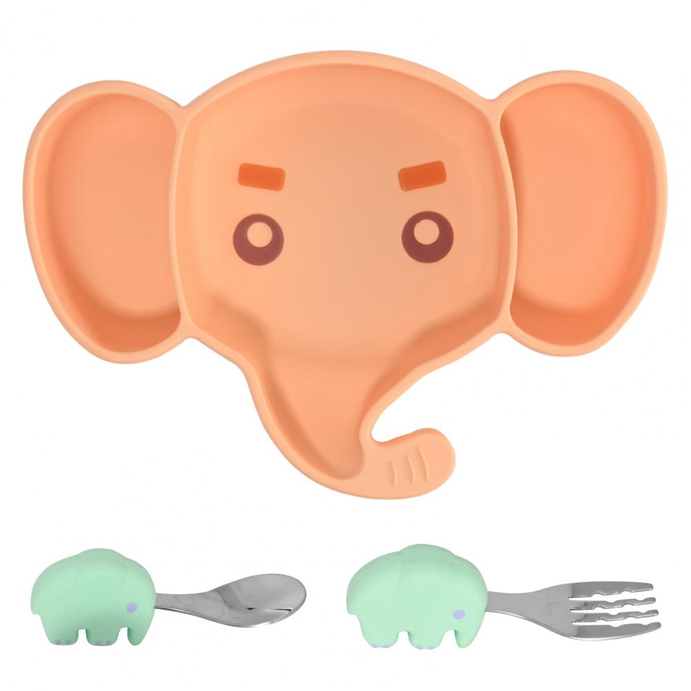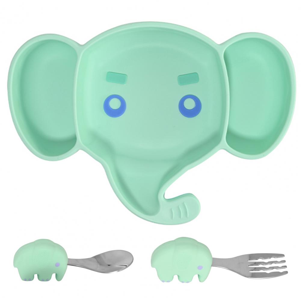 3 шт./компл. детская посуда мультфильм слон разделение Дизайн Силиконовая детская тарелка ложка Вилка Набор для малыша