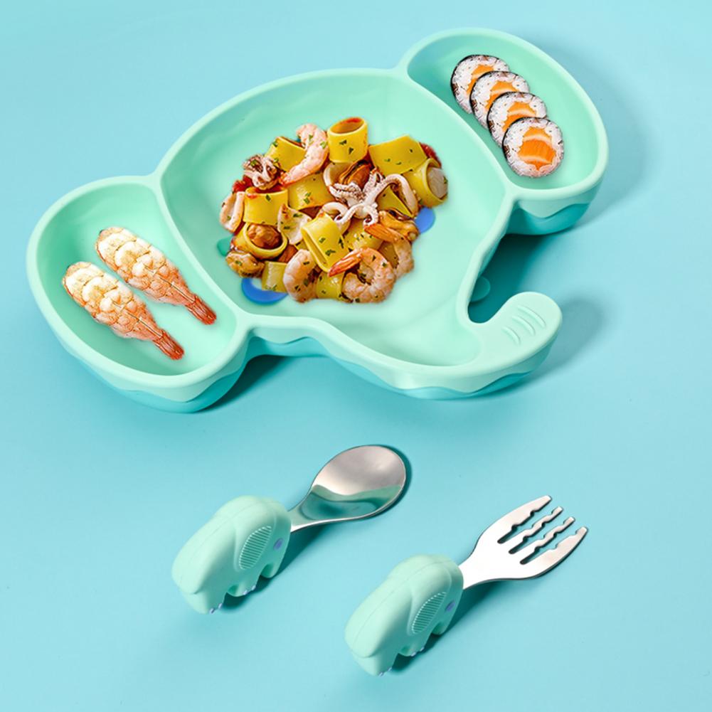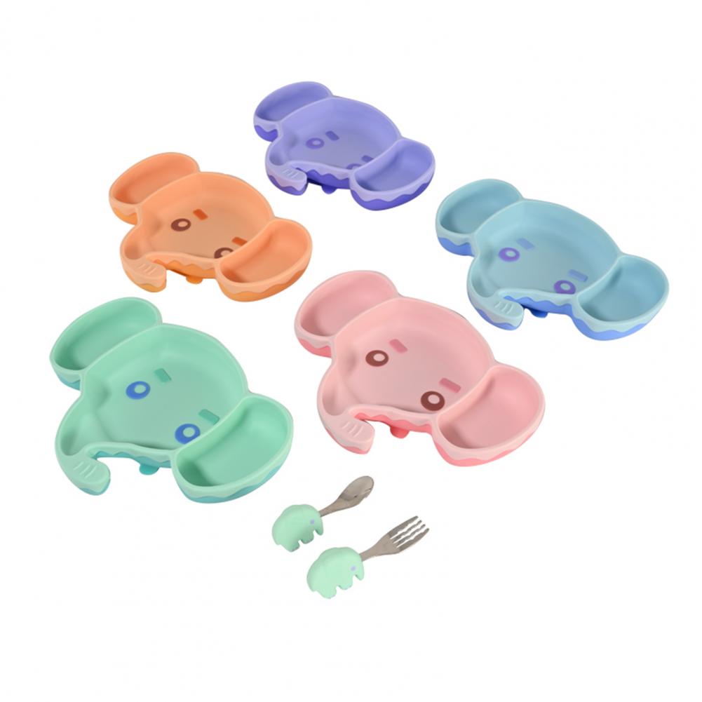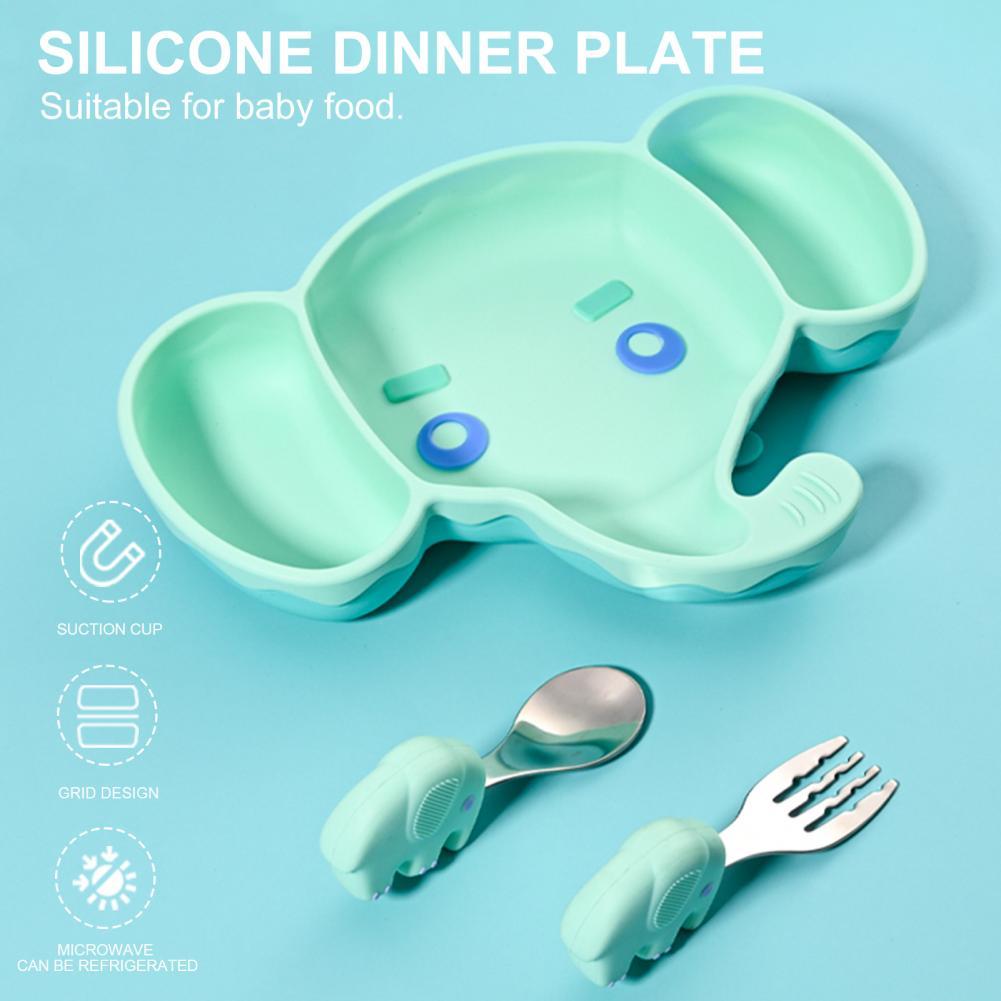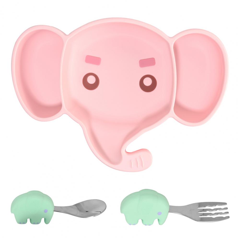 3 шт./компл. детская посуда мультфильм слон разделение Дизайн Силиконовая детская тарелка ложка Вилка Набор для малыша