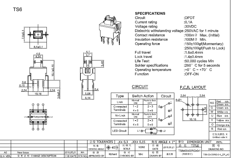 TP2 мгновенные и TPL2 защелкивающиеся ультра-Миниатюрные PCB установленные кнопочные переключатели с биполярными сменными контактами.