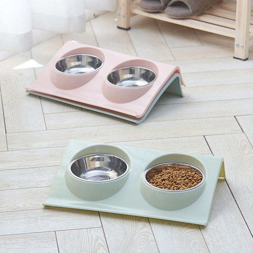 Двойная миска из нержавеющей стали для собак, кошек, щенков, корма, блюдо для воды, товары для домашних животных