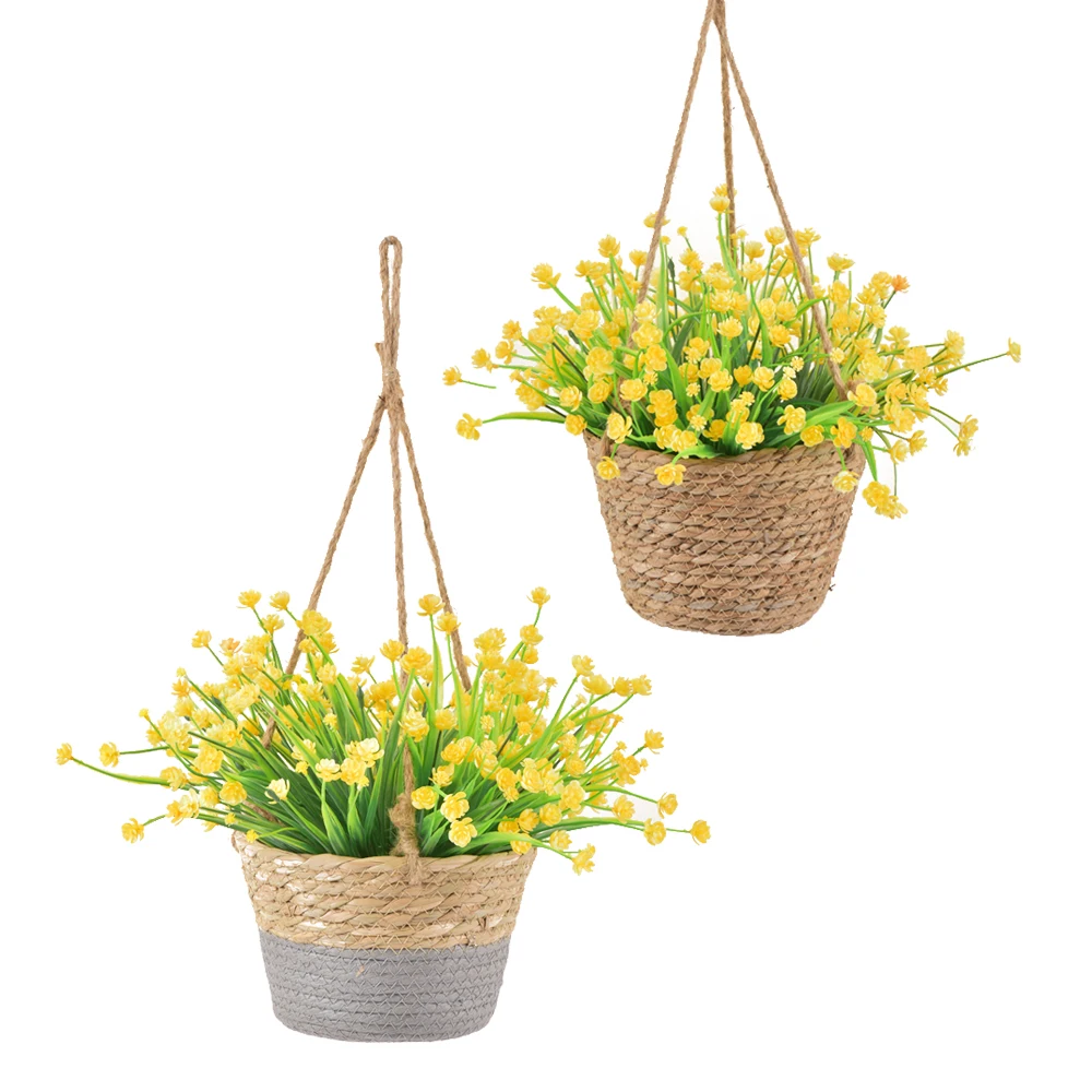 Ручная работа плетеная ротанговая Цветочная корзина зеленая Виноградная лоза горшок плантатор подвесная ваза контейнер настенная растительная корзина для сада