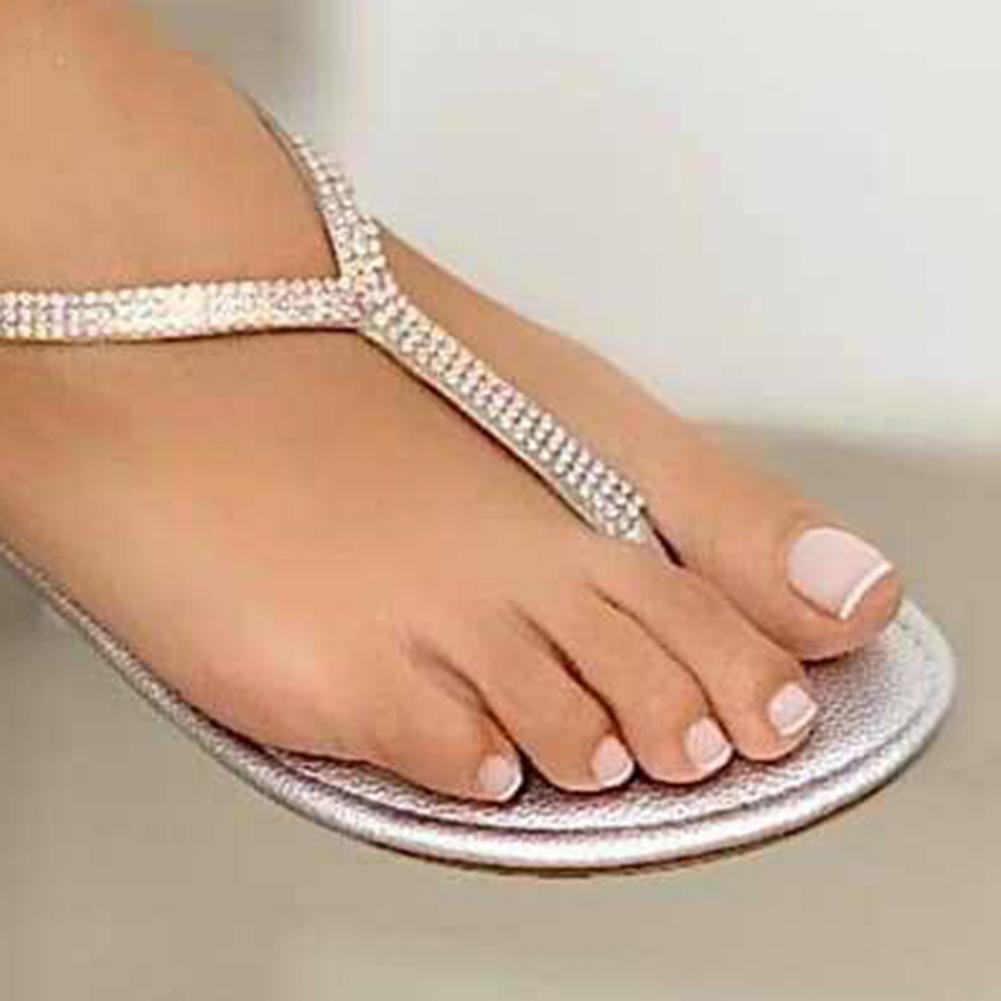 Дизайн Стразы настолько красивый, что делает эту пару сандалий на плоской подошве очень блестящими и модными.
