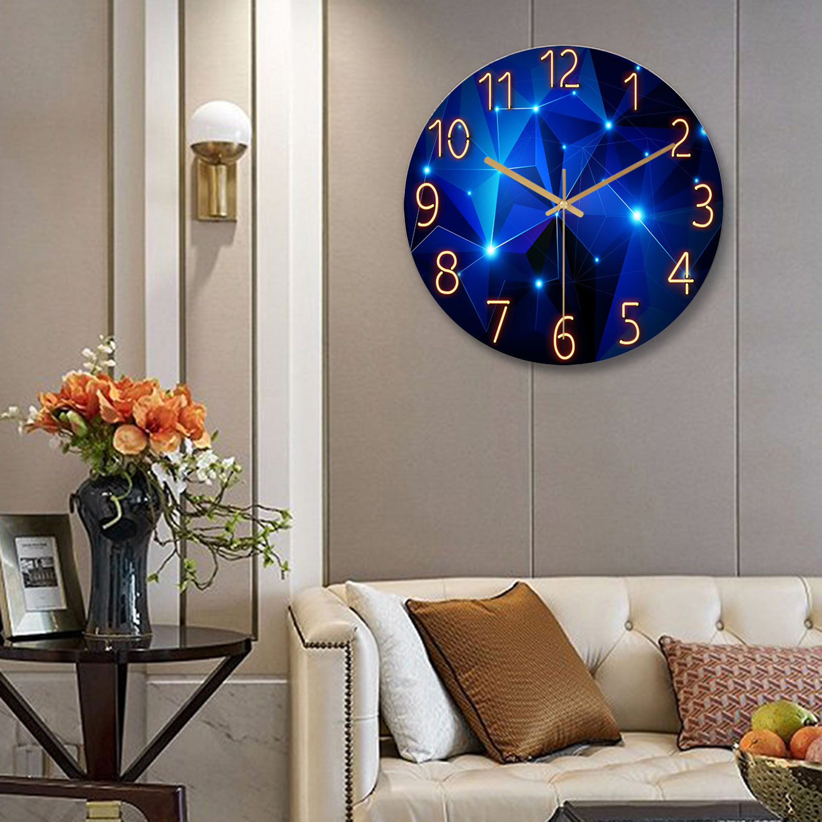 Красивый Геометрический дизайн с очаровательной темно-синей отделкой и эффектными металлическими золотыми акцентами, наши геометрические настенные часы от современногоВидениеСоздает непревзойденную современную атмосферу, в которую ваши гости влюбятся!