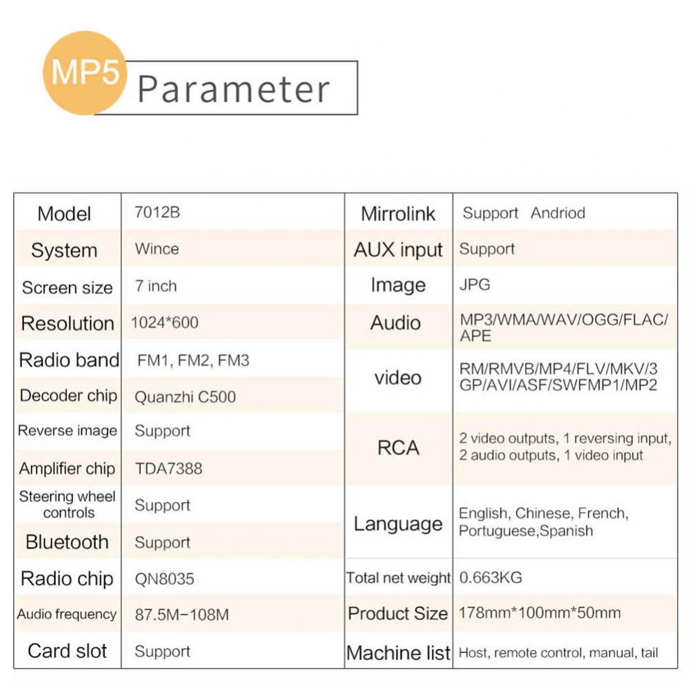 7012B 1080P HD 7 дюймов автомобильное радио стерео Bluetooth MP4 MP5 USB плеер сенсорный экран