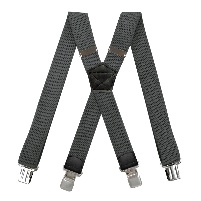 DescriptionHeavy Duty Work Suspenders for Men 3.8cm Wide X-Back with 4 Gripper Clasps Adjustable Elastic Trouser Pants Braces Black