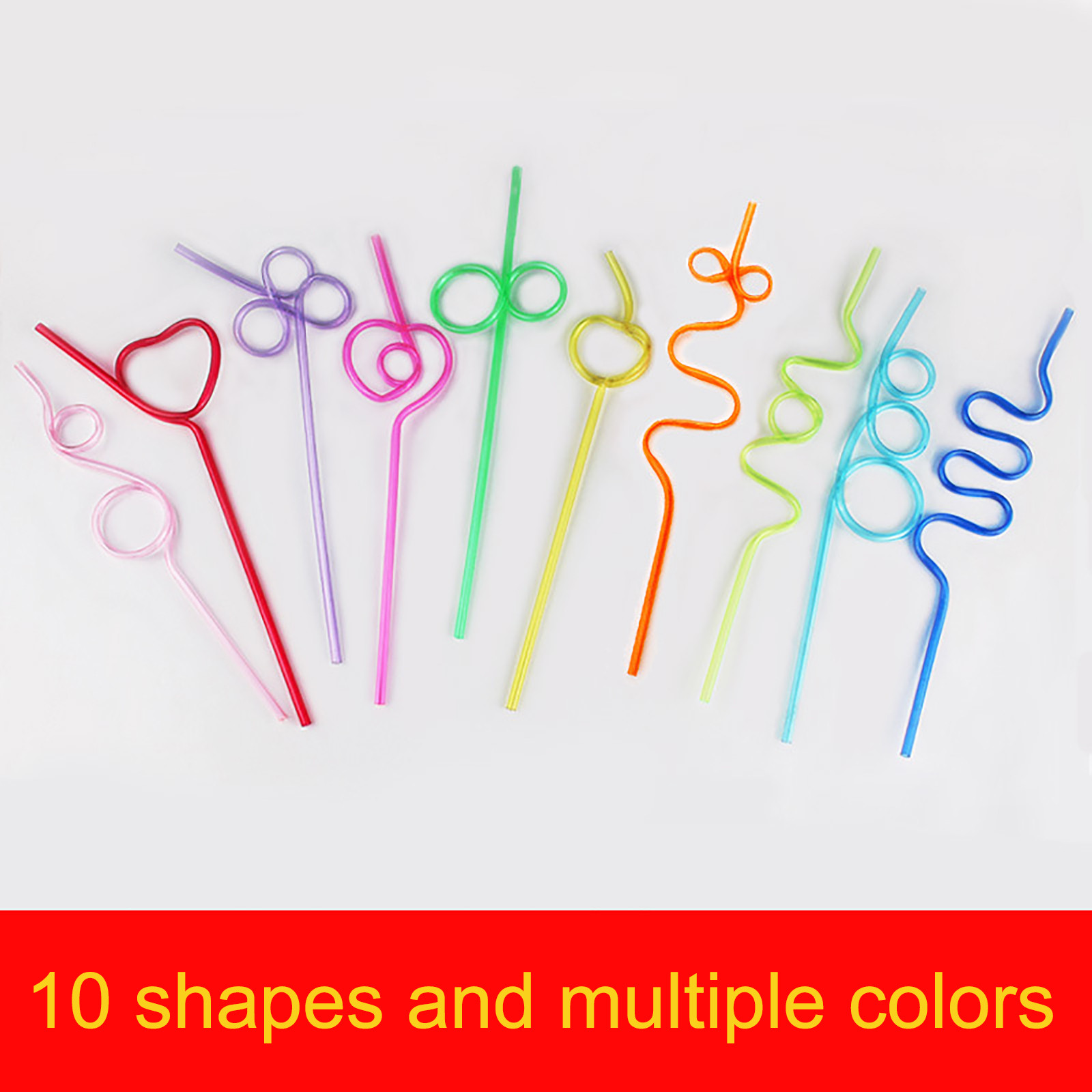 Humanized design: 10 styles and 10 colors, enjoy the joyProducts include: 10PCS disposable hard plastic PVC straws(10 shapes and 10 colors)