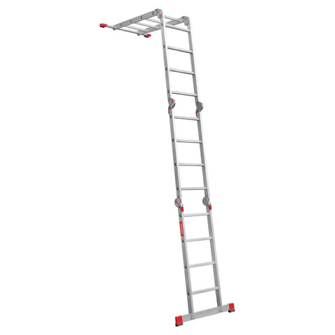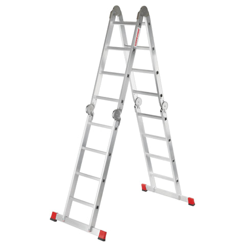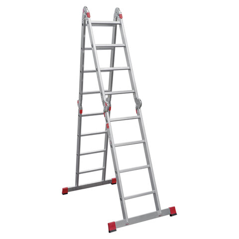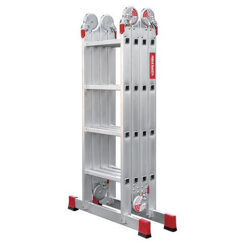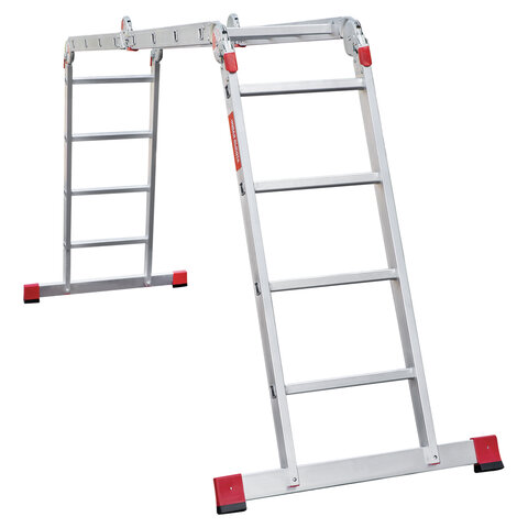Лестница-трансформер: формула 4х4 ступени. Универсальный инструмент с увеличенной шириной рабочей платформы (40 см) для выполнения различных видов работ. Модель отличается функциональностью и компактностью.