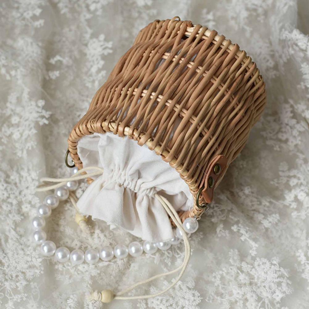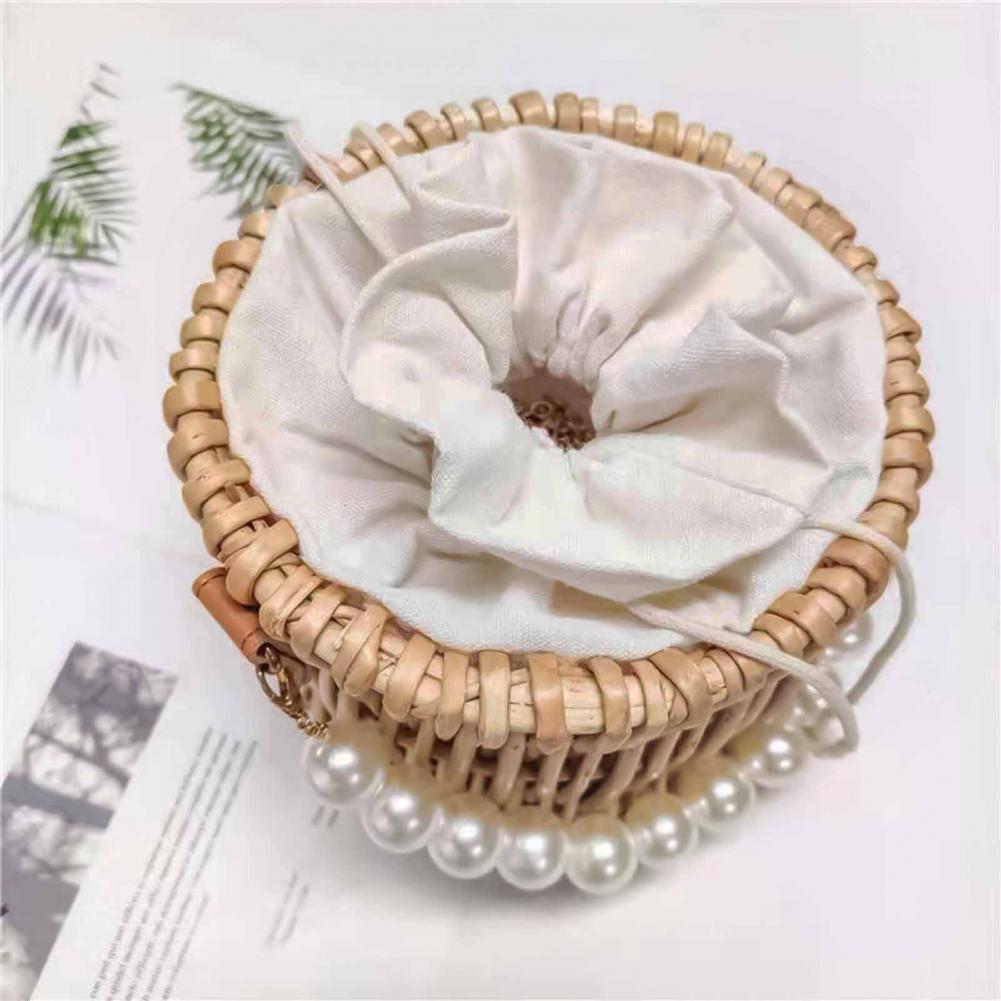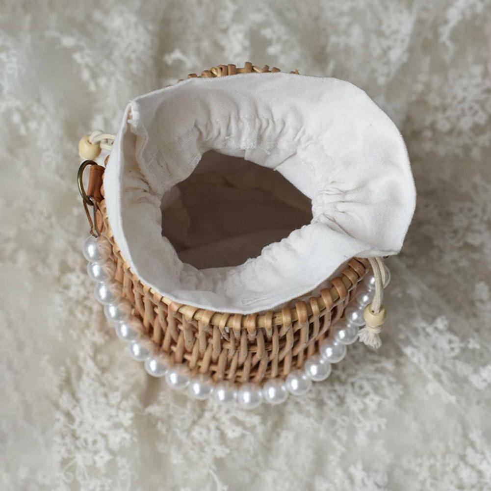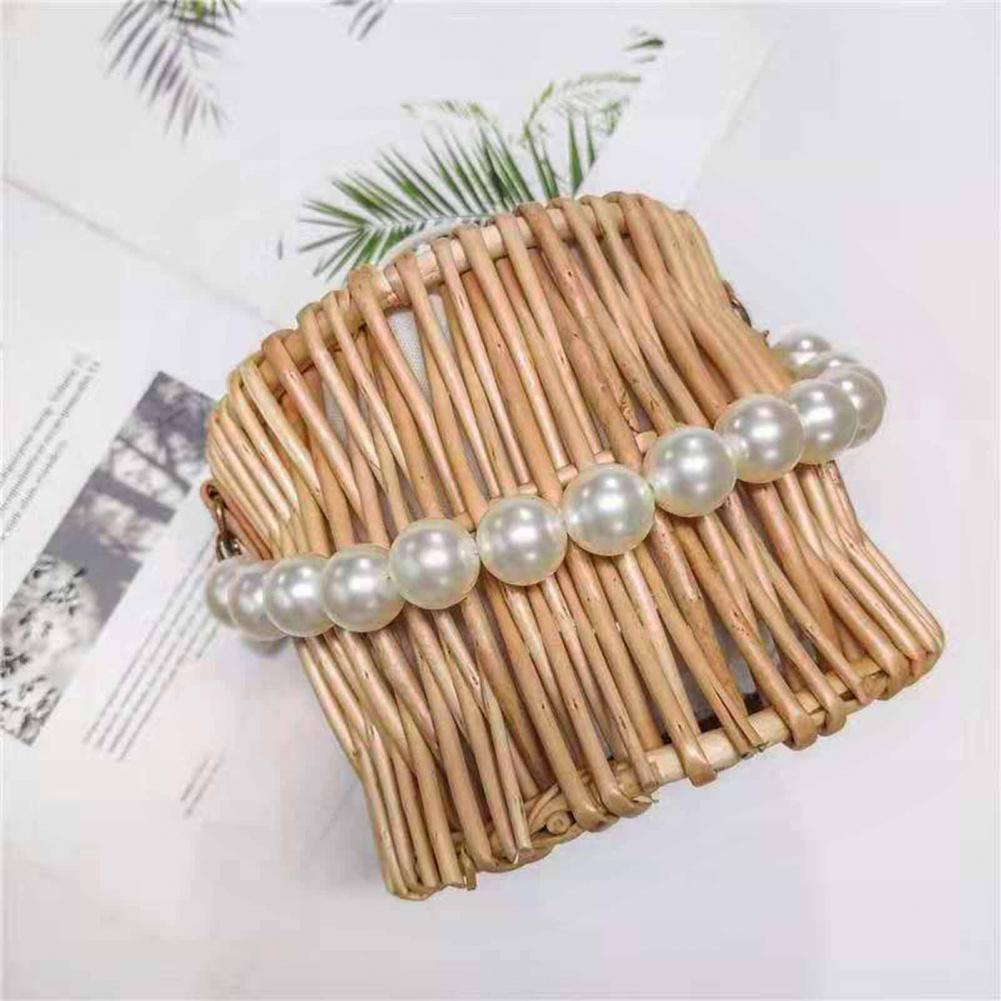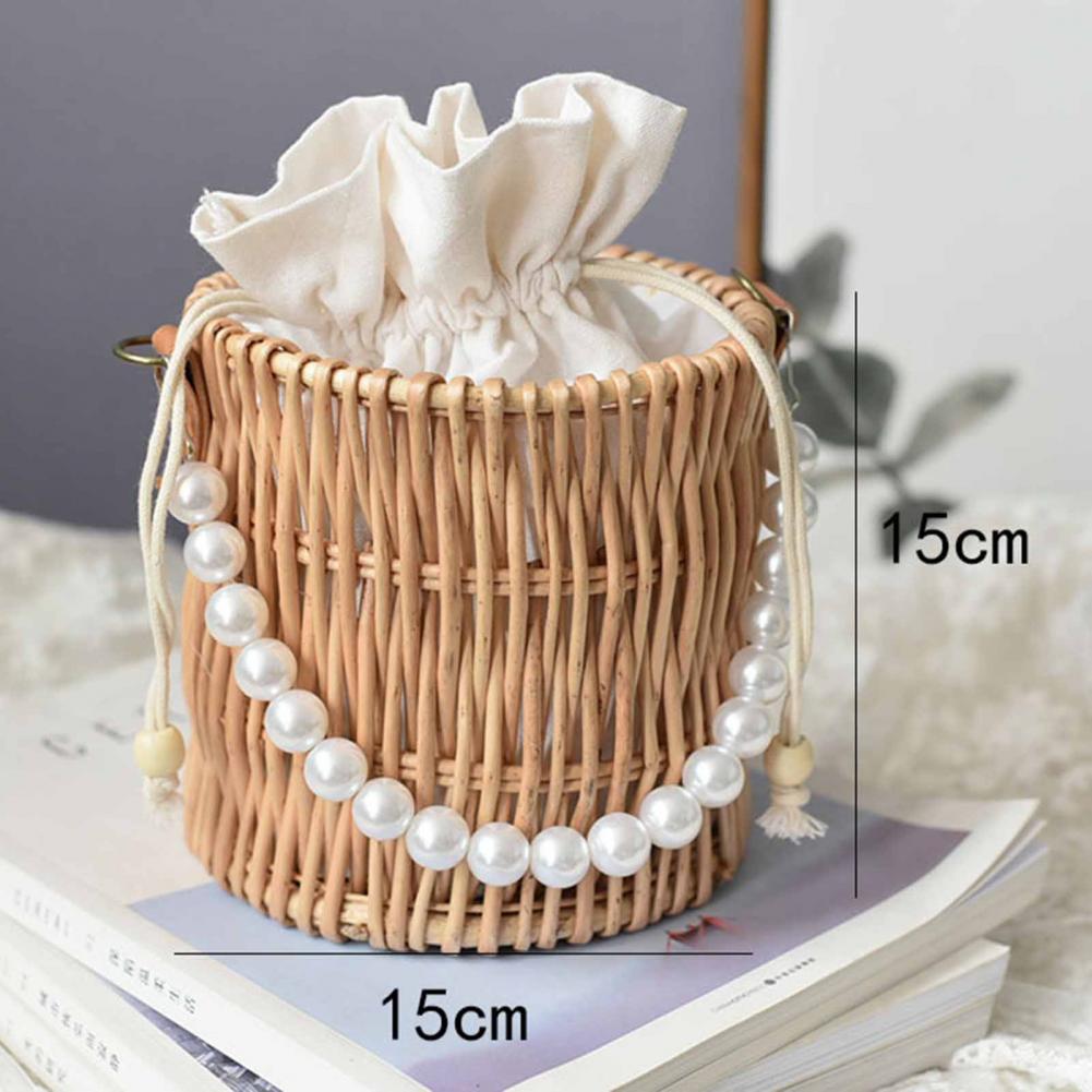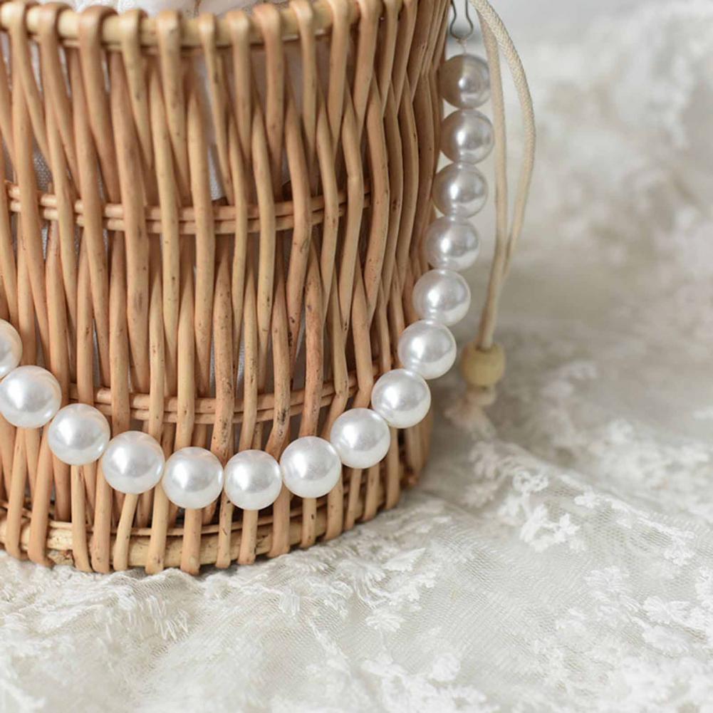 Adoption of its fake pearl handle design, this woven bag looks more elegant and can make you look more classy.