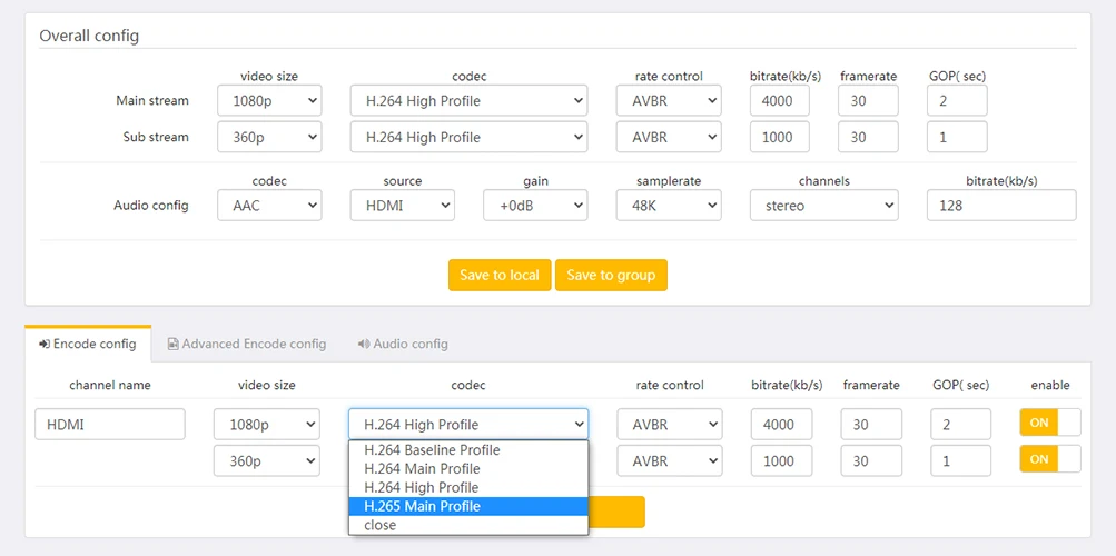 Форматы кодирования аудио: AAC, MP3, PCMA и т. Д., поддержка протокола прямого потока HTTP, RTSP, RTMP потока push, RTMP pull flow, UDP, протокол многоадресной сети и т. Д. И один и тот же канал может включить все сетевые потоки одновременно.