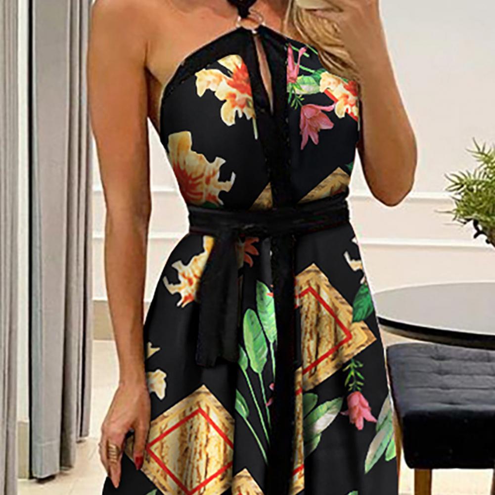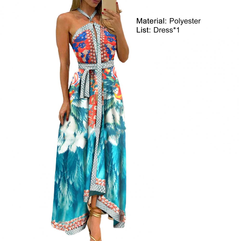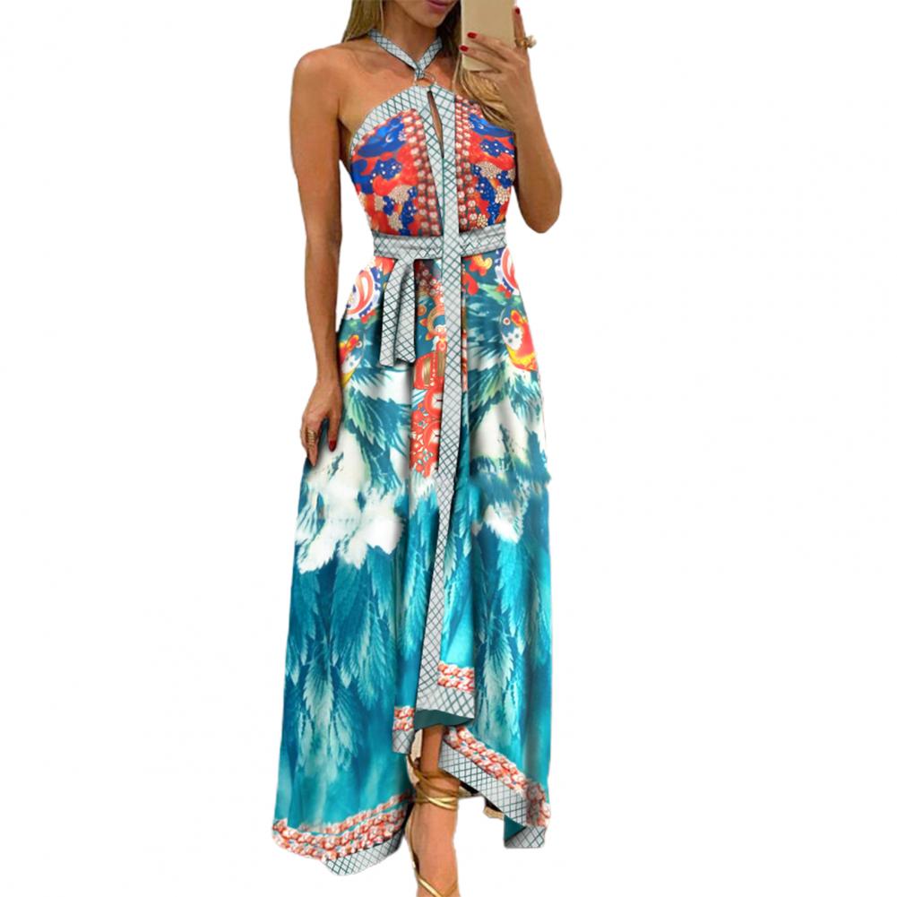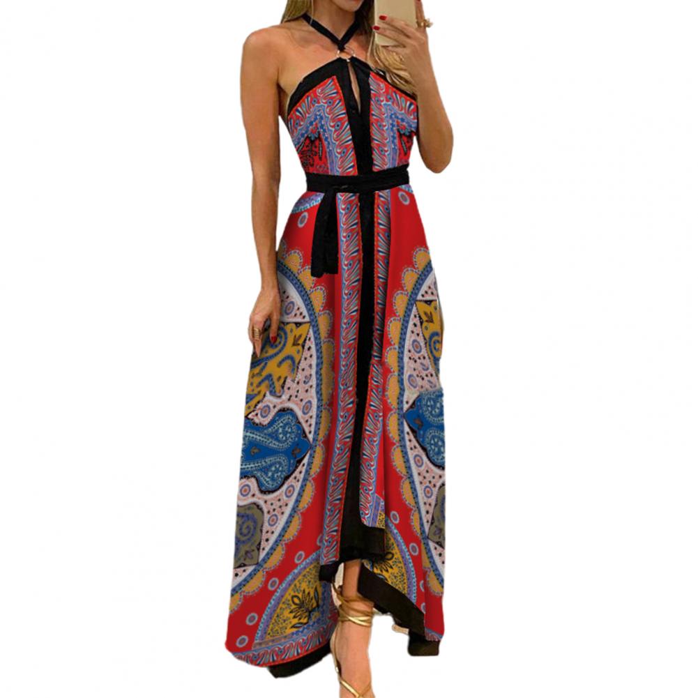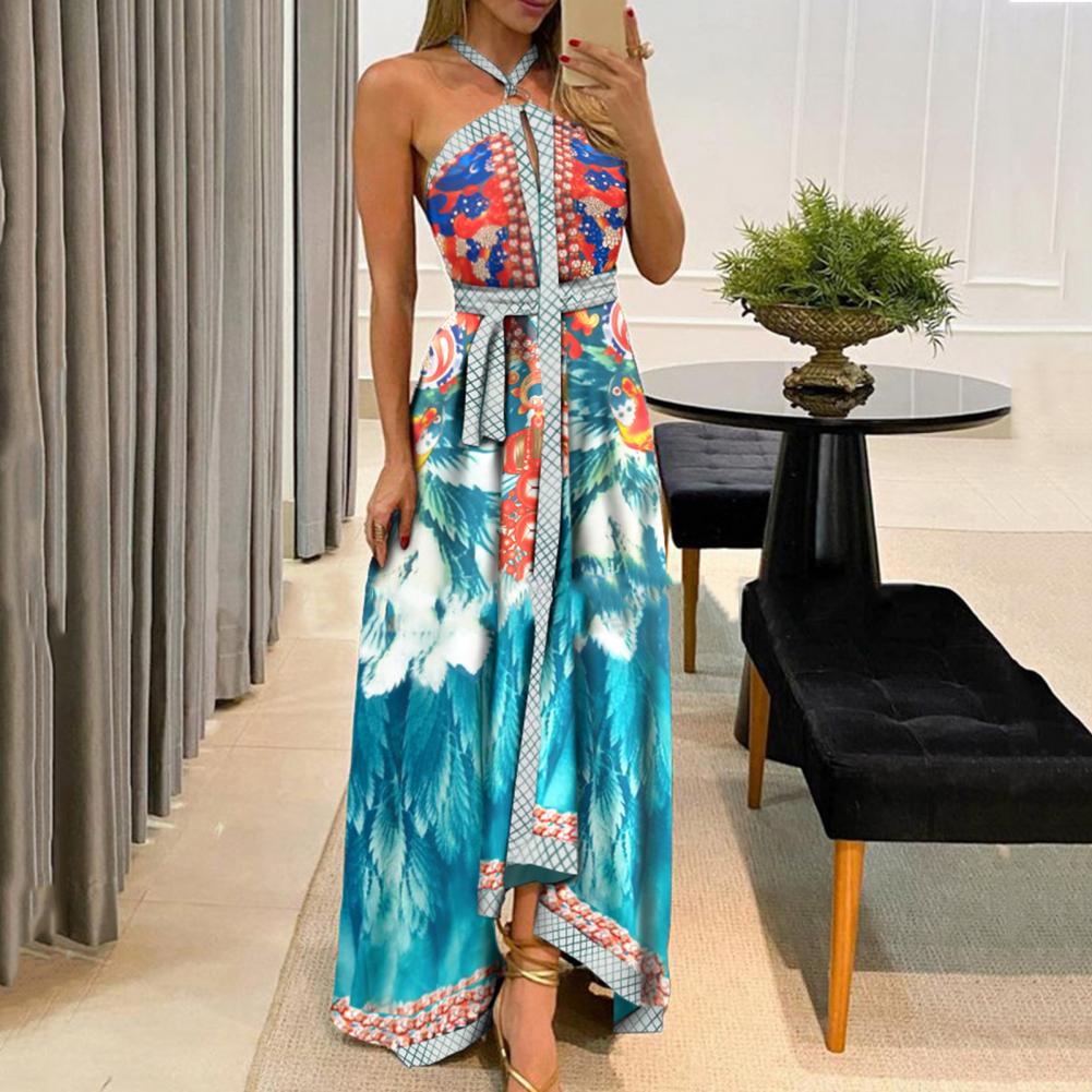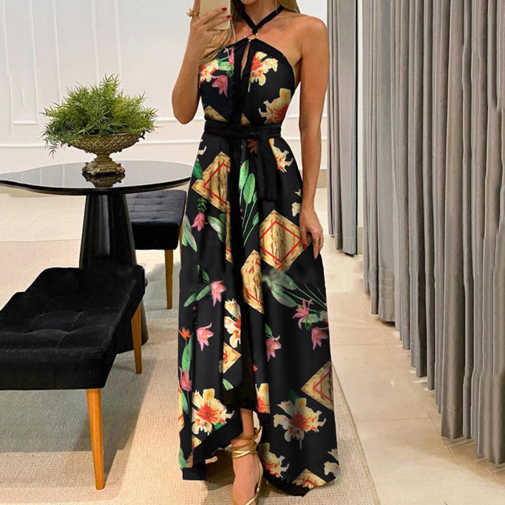 Летнее женское платье с цветочным принтом и открытыми плечами, винтажное платье с лямкой на шее, без бретелек, макси платье, сарафан с большим подолом, Макси платье с открытой спиной