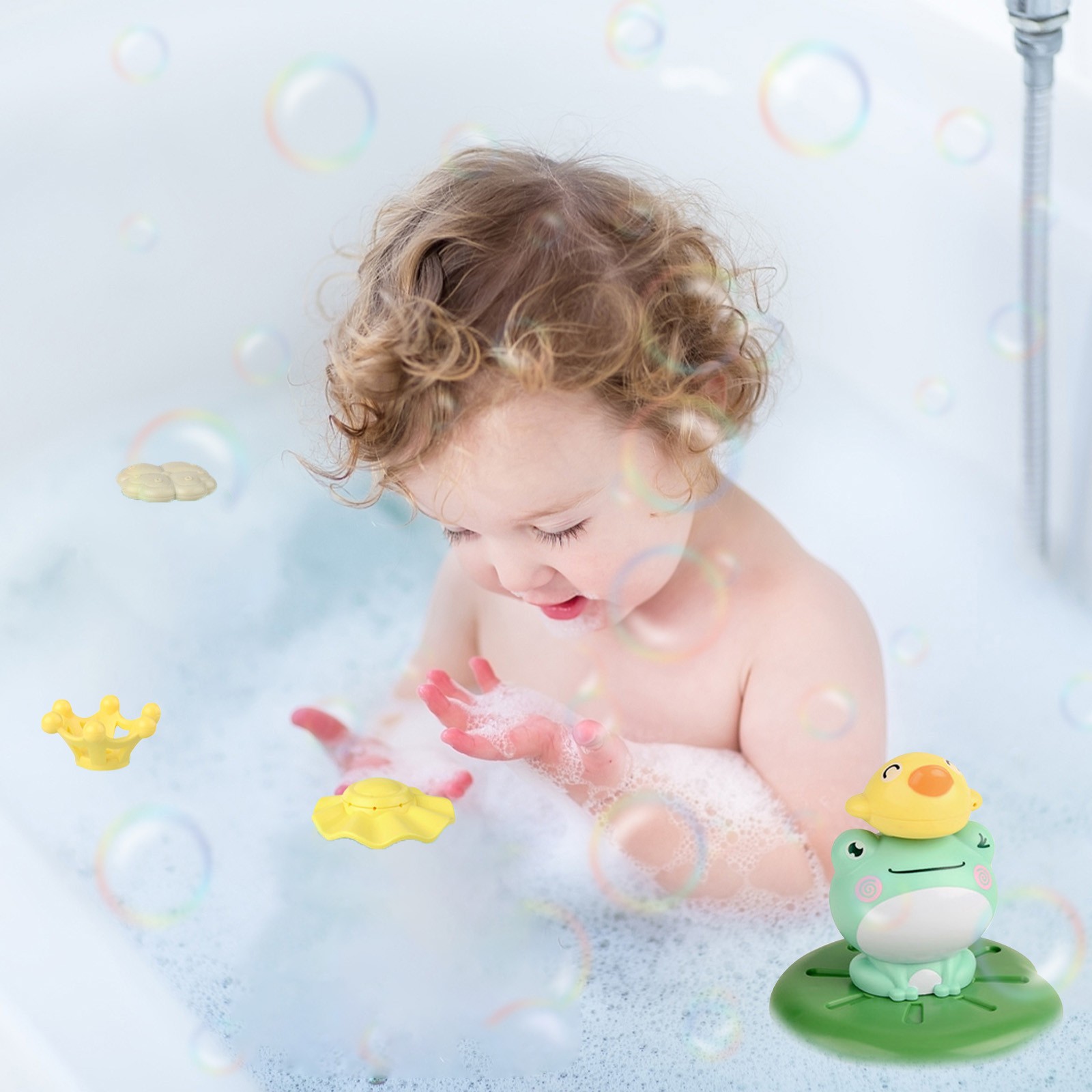 1 * игрушка для ванны Лягушка, 4 * аксессуары для шляпы(Батареи не В комплекте)