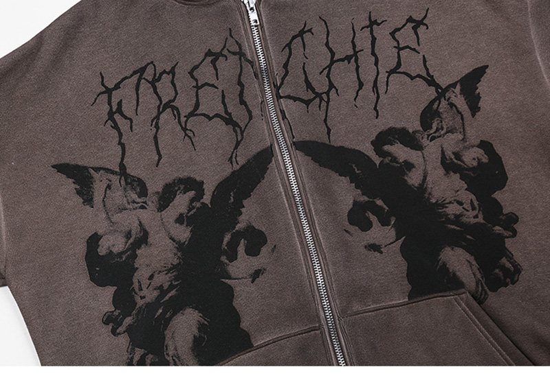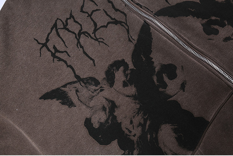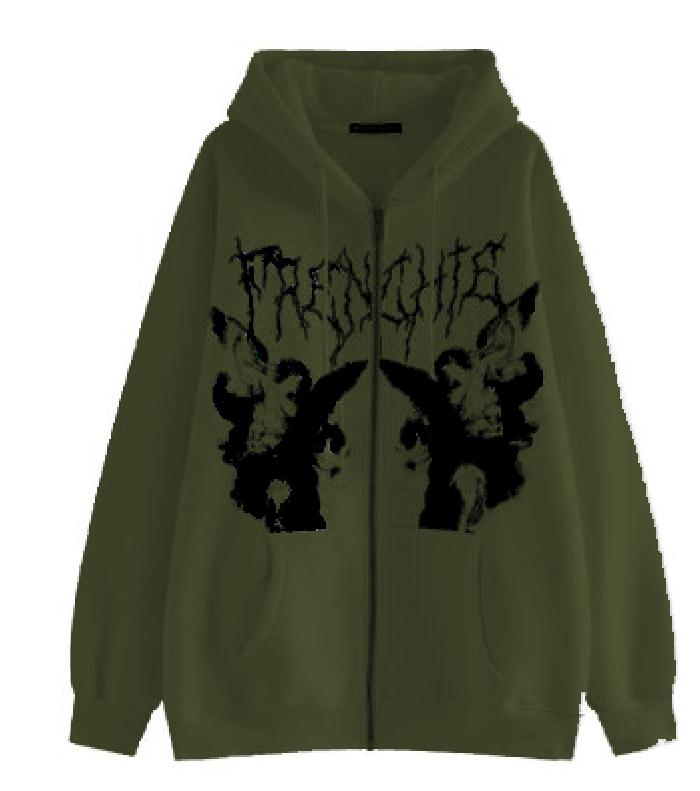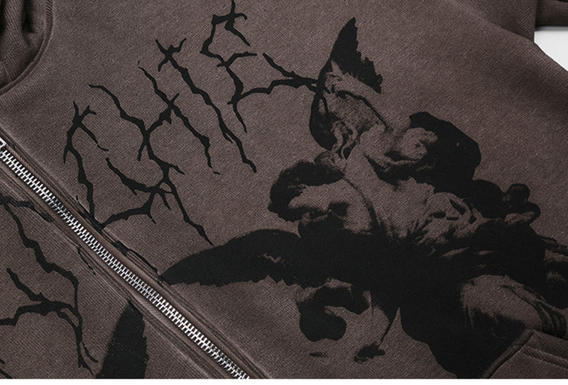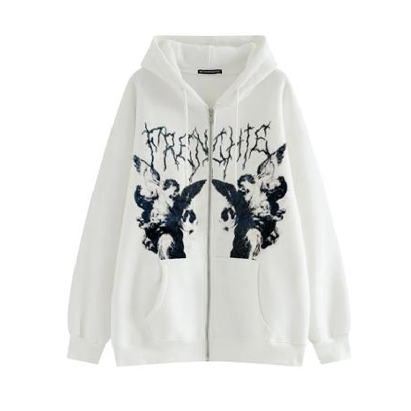 Women Plus Size Hooded Sweatshirt, Printed Loose Fit Long Sleeve Zip-up Pullover with Pockets