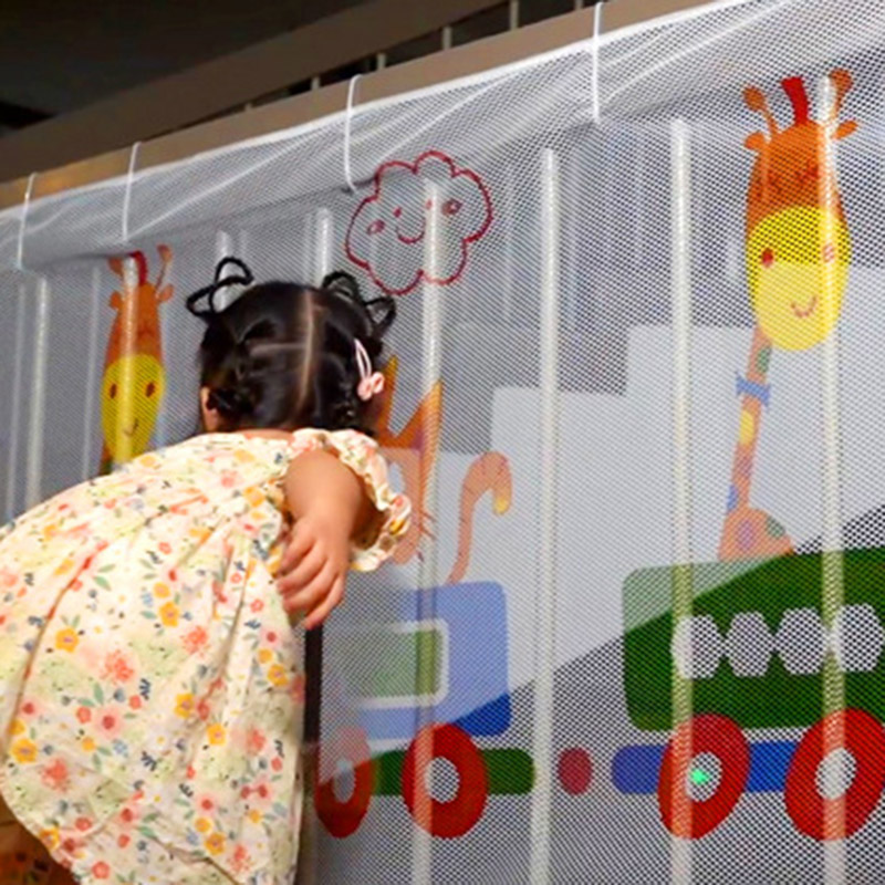 1. Высококачественный прочный материал: безопасный забор изготовлен из плотного сетчатый материал из полиэстера, который устойчив к растяжению и разрыву, и защищает безопасность детей. Сетка устойчива к атмосферным воздействиям и водонепроницаема, что очень подходит для использования в помещении и на открытом воздухе.