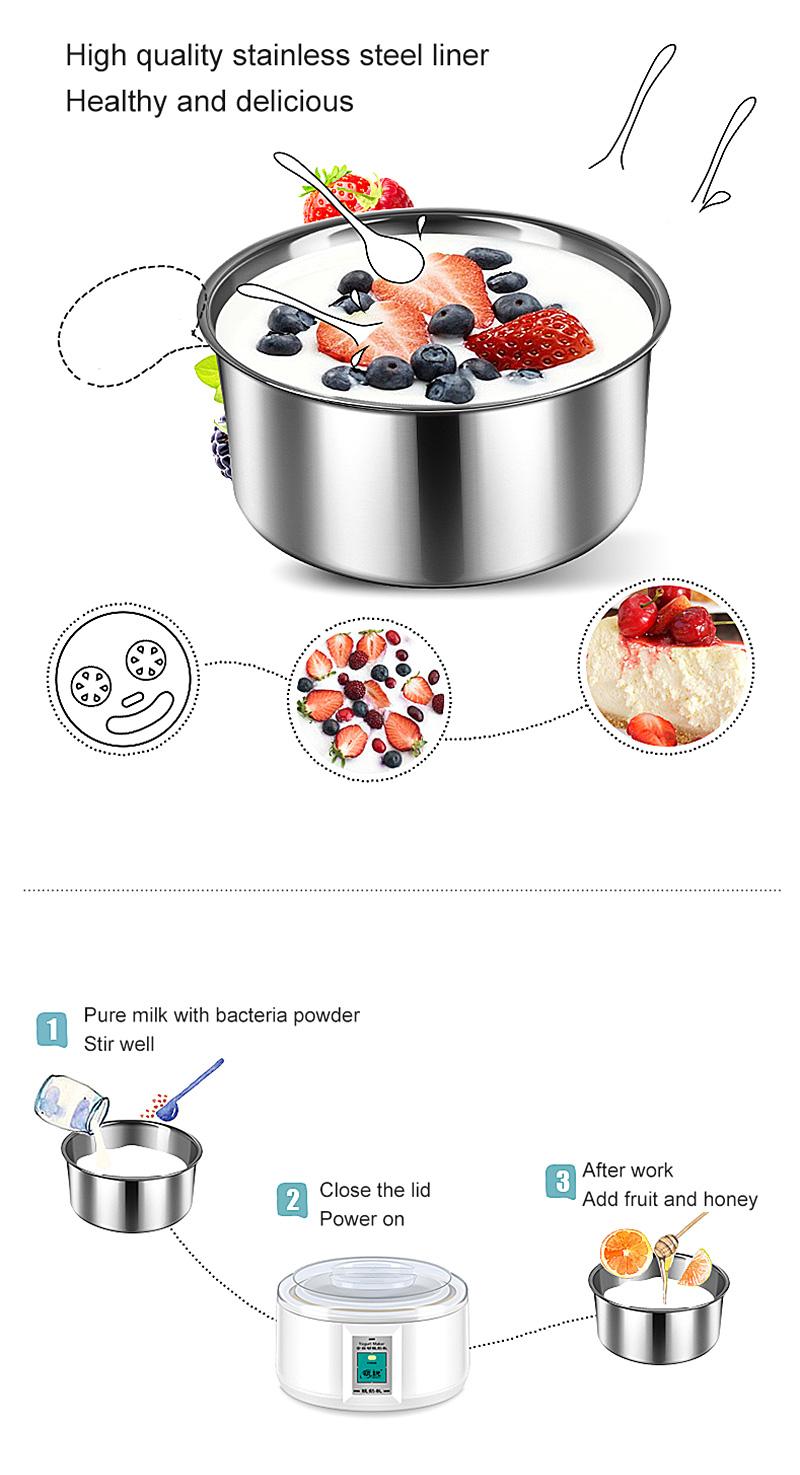 Продукт: 1,5л цифровой йогурт чайник автоматический с 7 очками 1 вкладыш из нержавеющей стали 15 Вт для дома