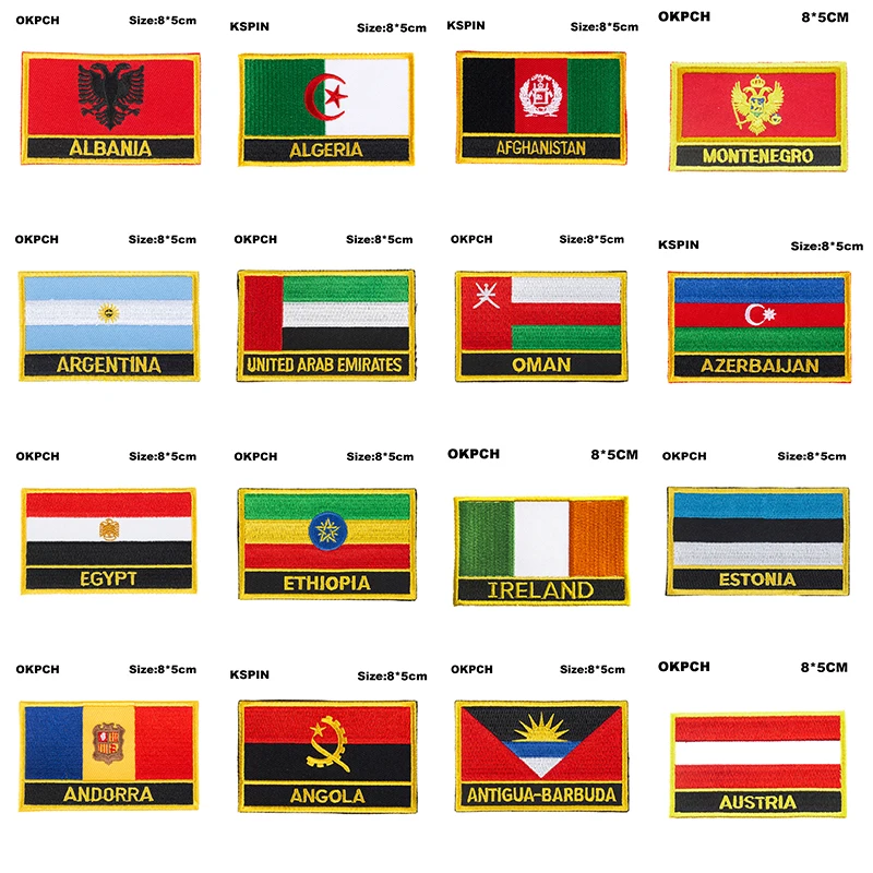 National Flag Embroidery Patch Badge Czech Rep. Zimbabwe Cameroon Qatar Comoros Ivory Coast Kuwait Croatia Kenya