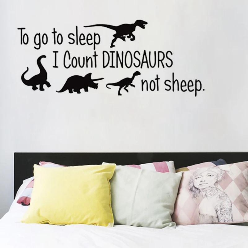 To Go To Sleep I Count динозавры не Овцы Мультфильм художественная стена с цитатой стикер дети гостиная спальня виниловая настенная Наклейка Декор