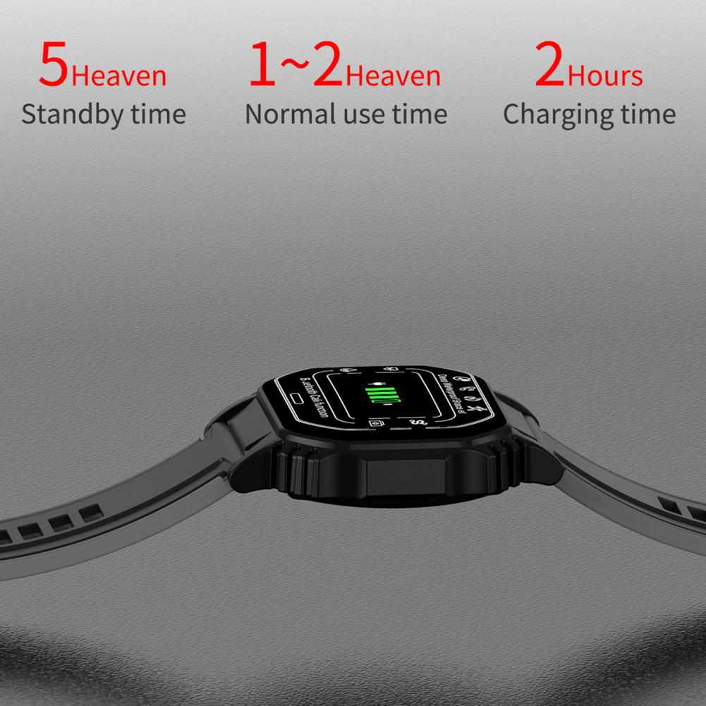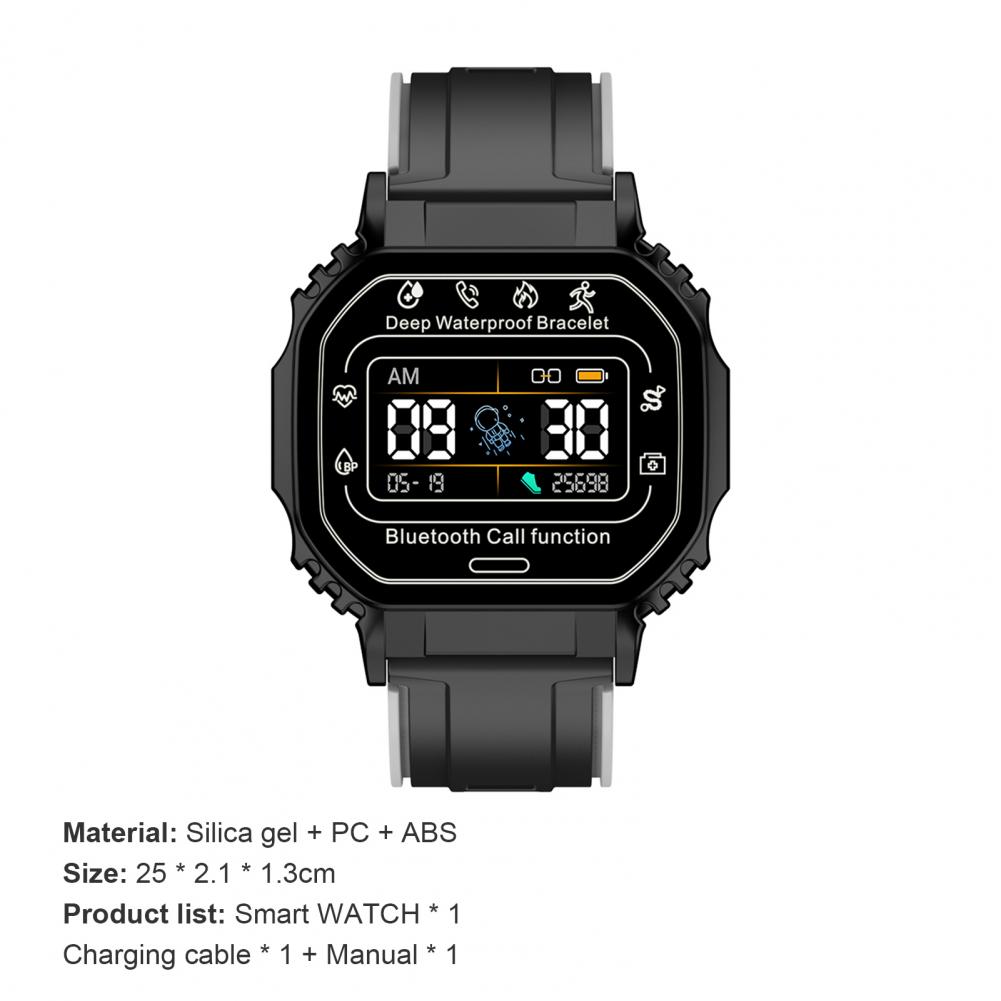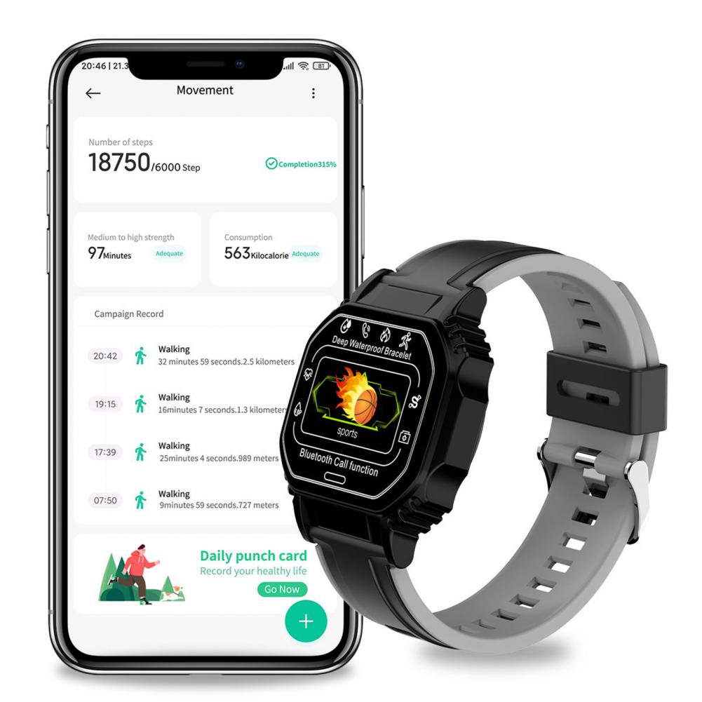 Множество привлекательных функций были интегрированы в этот продукт, такие как спортивная запись, Bluetooth Вызов, воспроизведение музыки Bluetooth, вызов/текстовое сообщение/соцприложение подсказки сообщения/Будильник/напоминание о сидячем положении, сверхмощный чип, удаленная камера, режим DND, настраиваемая пластина циферблата, поиск браслета и телефона и т. д.