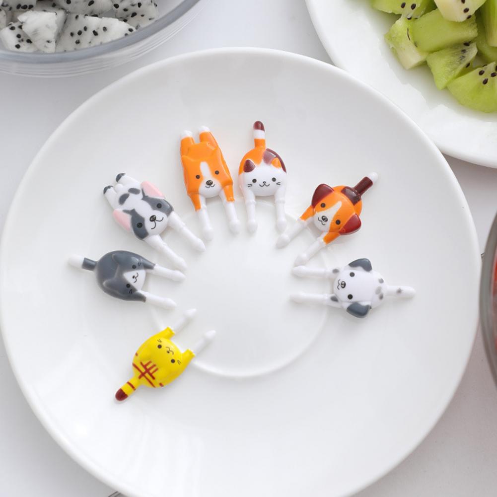 7 шт., вилка для фруктов, многоцелевой, безопасный, пластиковый, для животных, для еды, для животных, с узором, для детей