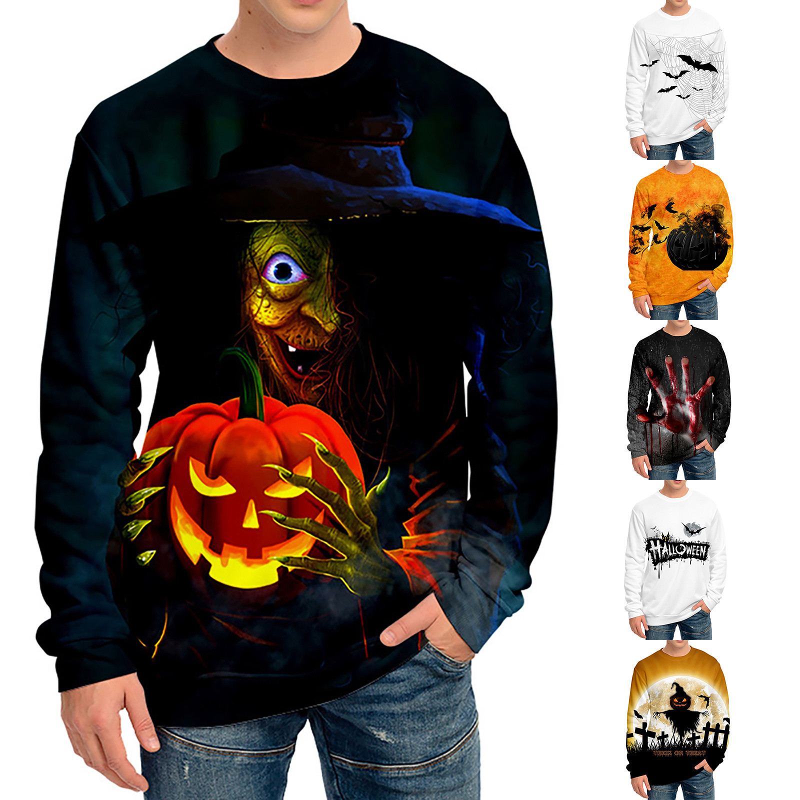 Мужчины и женщины мужчины 3D цифровая печать шаблон Хэллоуин Личность Круглый вырез пот