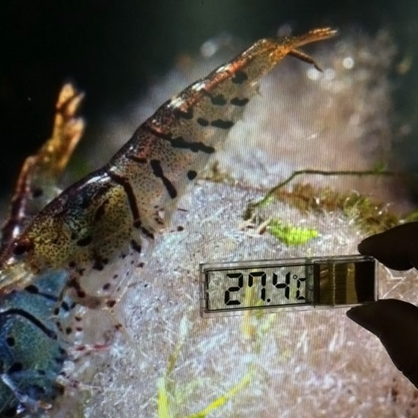 Оторвите наклейку и приклейте к внешнему стеклу аквариума под уровнем воды